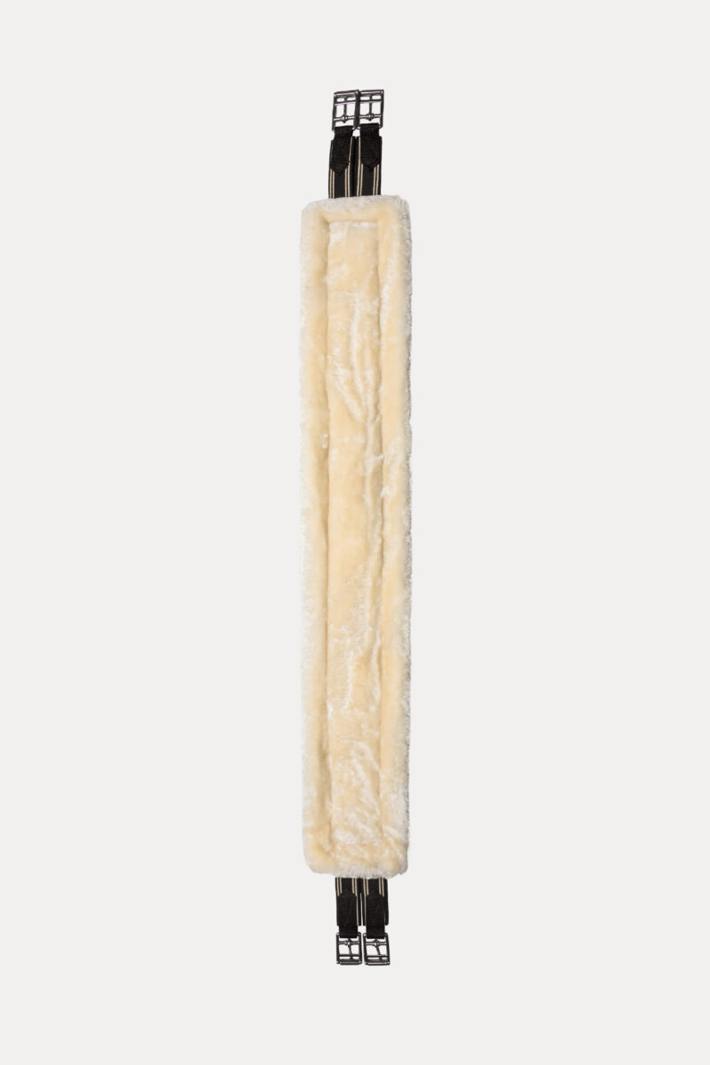 The girth is soft and comfortable, featuring pressure-relieving foam and lined with dense, fluffy artificial fur for added comfort.