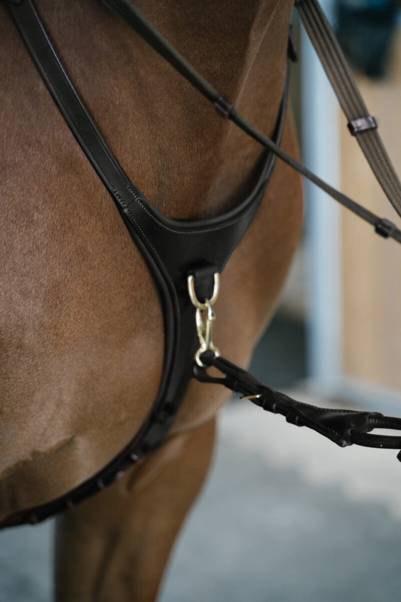 Das voll verstellbare Yoke Martingale wurde für optimale Passform und Verstellbarkeit entwickelt. Es ermöglicht Ihnen, die Passform um den Hals Ihres Pferdes individuell anzupassen und die Länge für maximalen Komfort und Effektivität während des Ritts einfach zu verstellen. Die sichere Rollschnallenbefestigung gewährleistet eine zuverlässige Verbindung mit jedem Sattelgurt, einschließlich Schutzgurten, und sorgt so für ein sicheres Reiten.