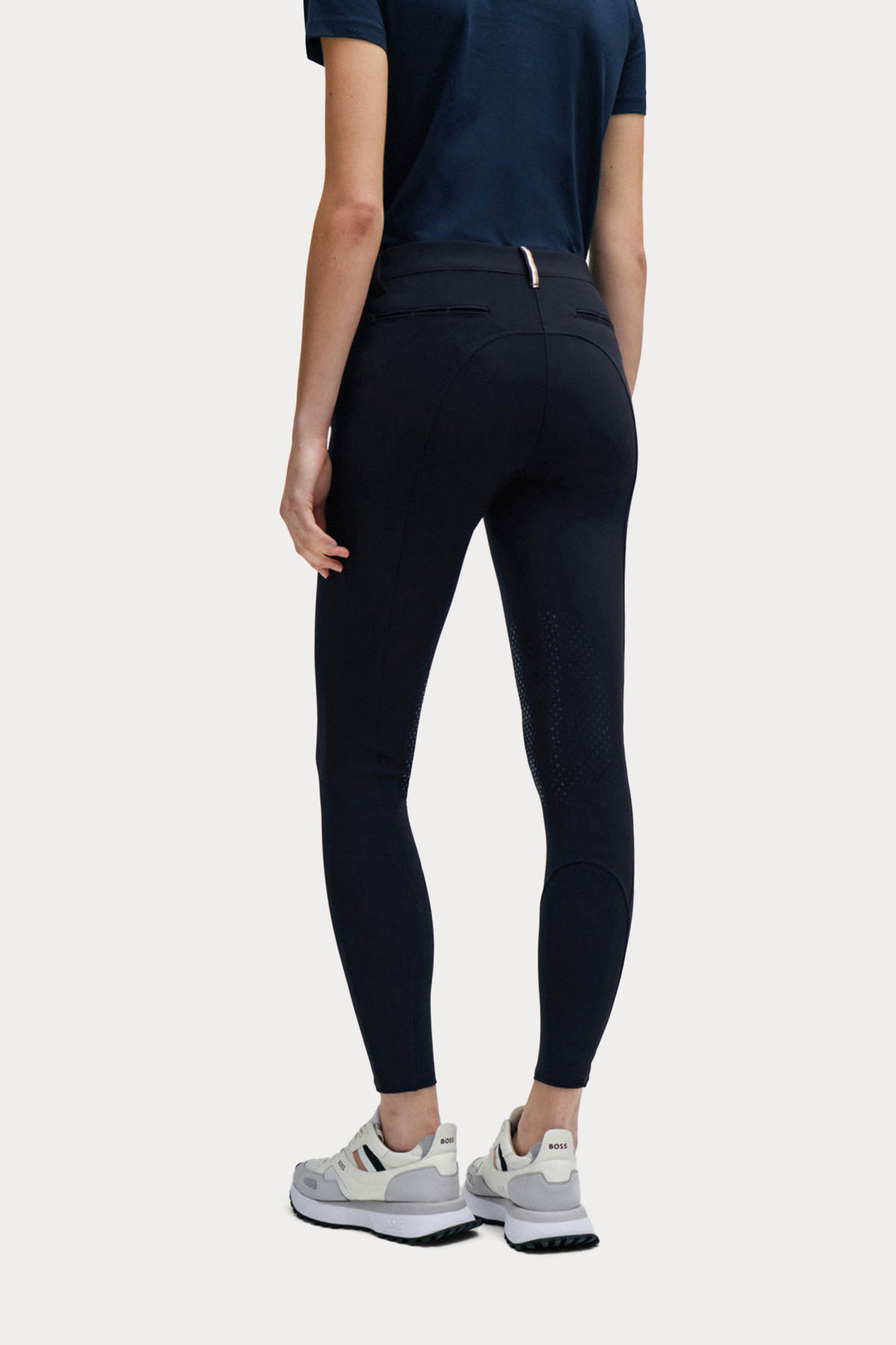 Die Hugo Boss Hazel Reithose ist sowohl bequem als auch stilvoll. Sie besteht aus leichtem, atmungsaktivem Material und bietet außergewöhnliche Bewegungsfreiheit – perfekt für lange Stunden im Stall. Die nahtlos in das Design integrierten Silikon-Kniebesätze sorgen für eine sichere Verbindung zum Sattel ohne Reibungs- oder Scheuergefahr.