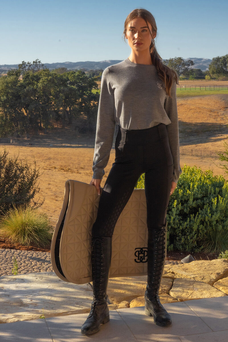 Der gerippte Rundhalskragen verleiht einen Hauch von Raffinesse, während die schmale Passform für eine schlanke, schmeichelnde Silhouette sorgt. Das kontrastierende PS-Logo auf der Brust unterstreicht Ihr Engagement für Stil und Qualität. Dieser Pullover mit perfekter Passform wird schnell zu einem unverzichtbaren Bestandteil Ihrer Garderobe und bietet Funktionalität und zeitlosen Stil für anspruchsvolle Reiter.