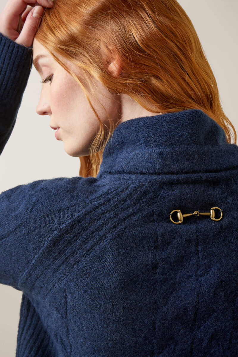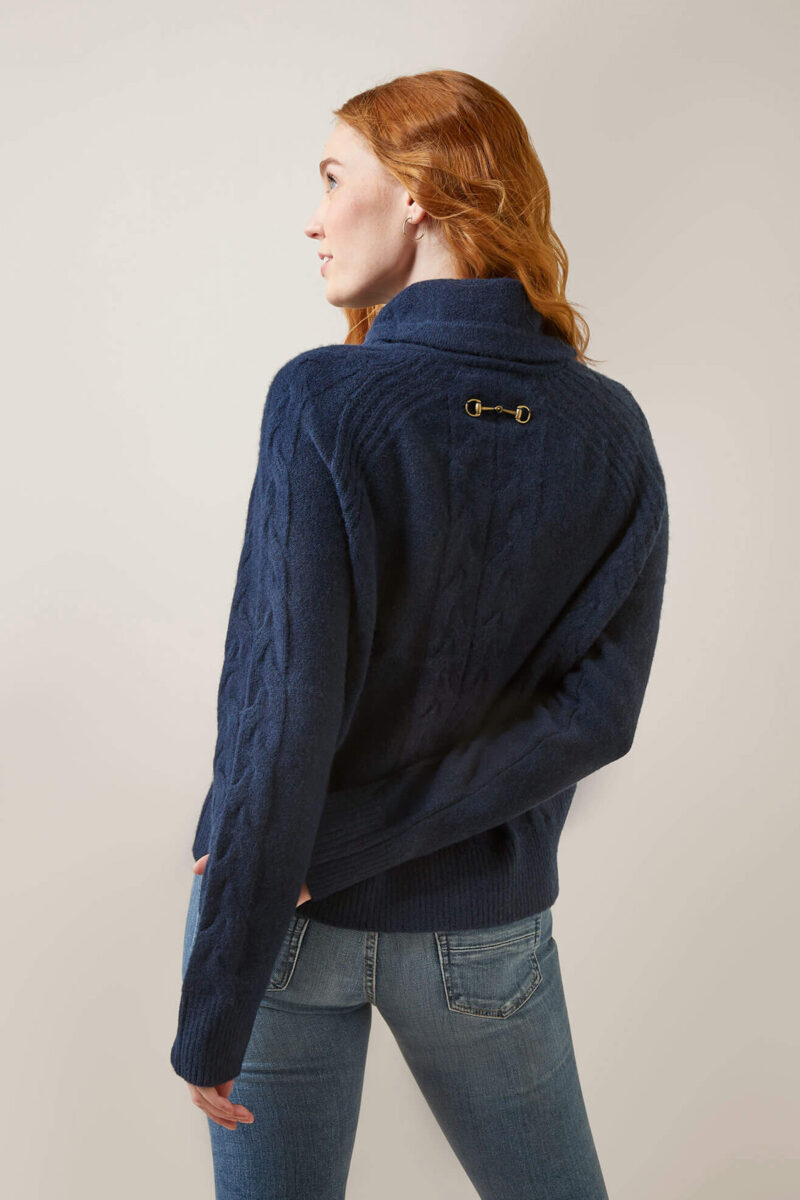 Begrüßen Sie die Kälte mit dem Ariat Novato Pullover in Navy Heather. Dieser Pullover vereint Wärme und Stil und ist Ihr Lieblingsstück für kühlere Tage. Der hohe Wickelausschnitt verleiht ihm einen Hauch von Eleganz, während die Kombination aus Zopf- und Rippstrickmuster ihm einen klassischen und zugleich modernen Look verleiht.