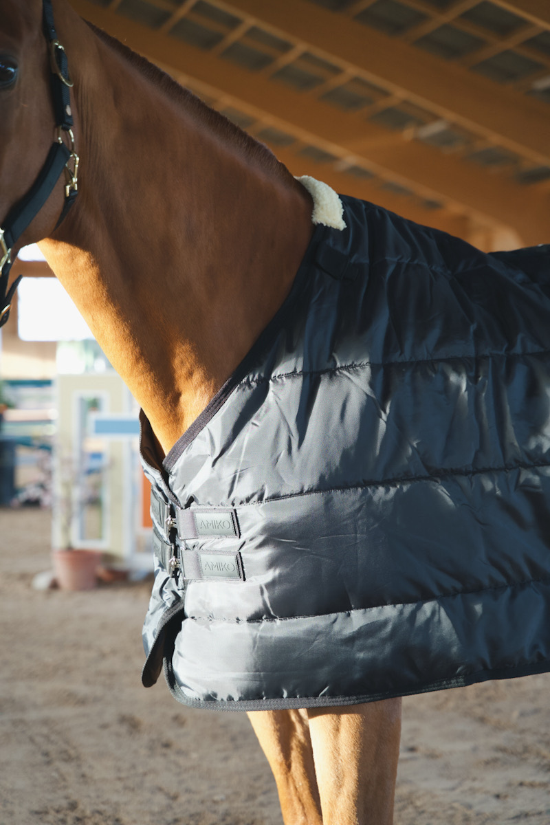 Controle por completo la comodidad de su caballo con el forro de alto rendimiento Amiko, diseñado por expertos para combinarse a la perfección con las mantas Amiko Performance para exteriores de 50 g y para interiores de 50 g. Este versátil forro le permite adaptar el nivel de calidez a cualquier clima, garantizando que su caballo se mantenga cómodo, seguro y protegido.