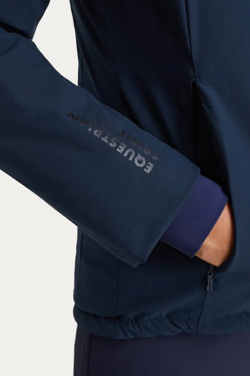 el forro elástico en áreas clave permite un movimiento sin restricciones, mientras que la insignia del logotipo de silicona en el pecho y el detalle de impresión metalizada en el puño añaden un toque elegante a esta chaqueta técnica.