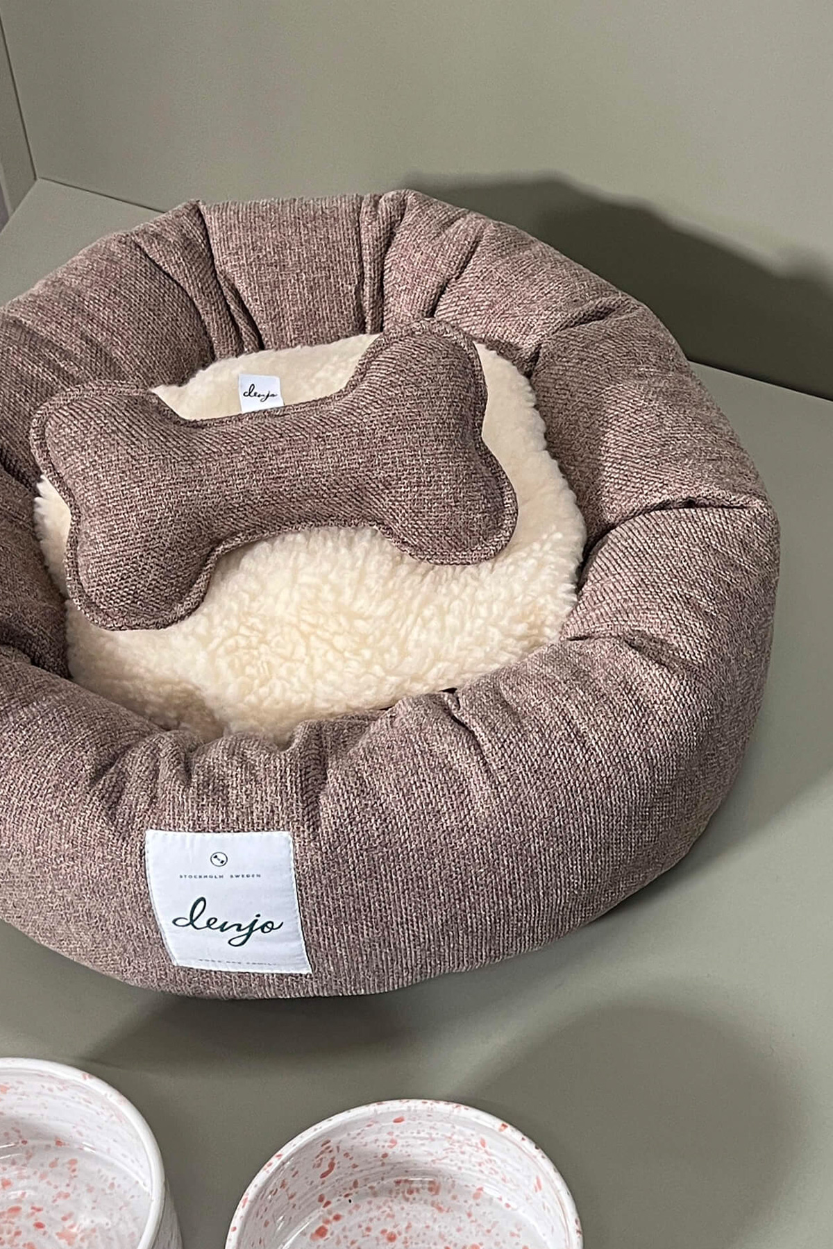 Denjo Dogs Buddy Bone est un jouet pour chien doux et léger conçu en forme d'os de chien, fabriqué à partir du même tissu utilisé dans Teddy Lounge.