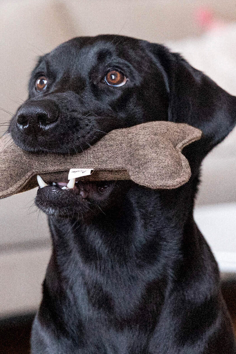 Denjo Dogs Buddy Bone est un jouet pour chien doux et léger conçu en forme d'os de chien, fabriqué à partir du même tissu utilisé dans Teddy Lounge.