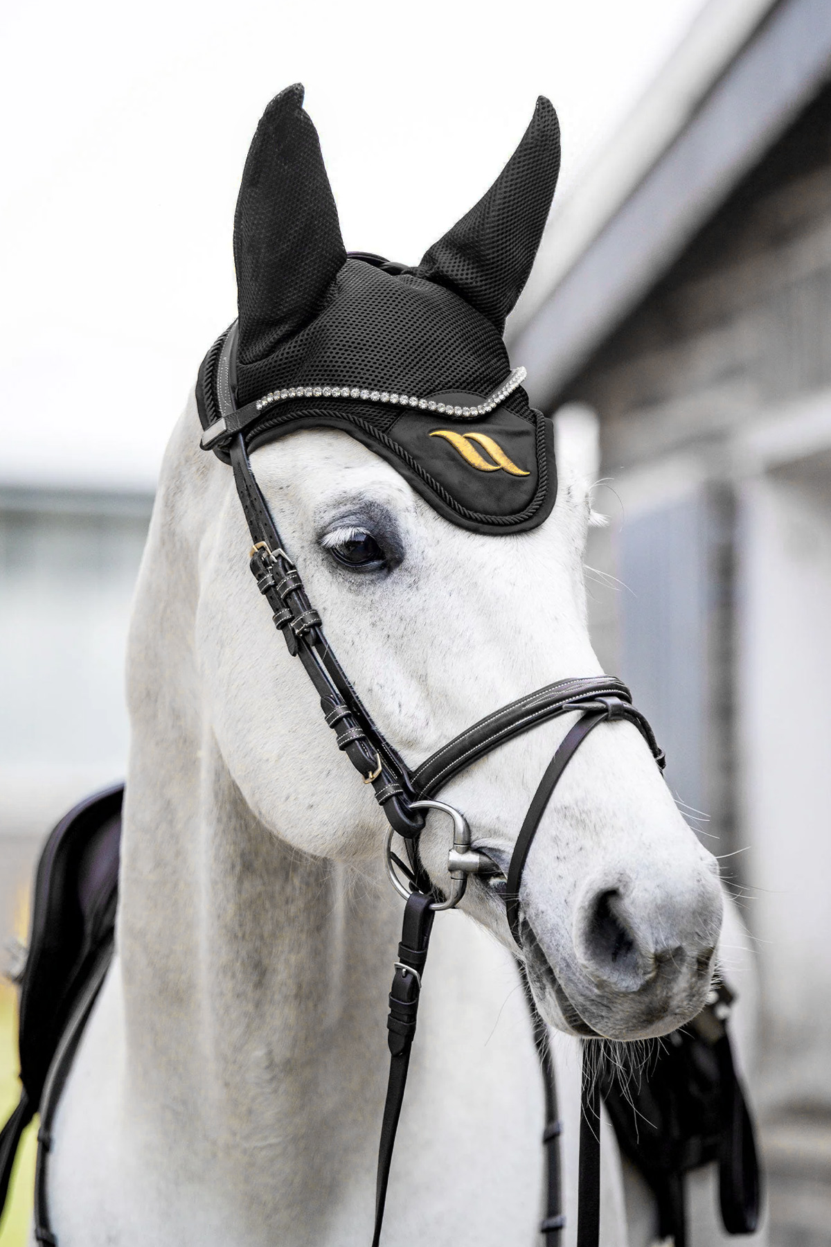 Finished with an elegant cord and featuring a stylish embroidered Back on Track logo at the front, this bonnet not only looks sleek but also shields against annoying flies and insects. Whether you’re on a forest trail or in the competition arena, it offers both protection and style.