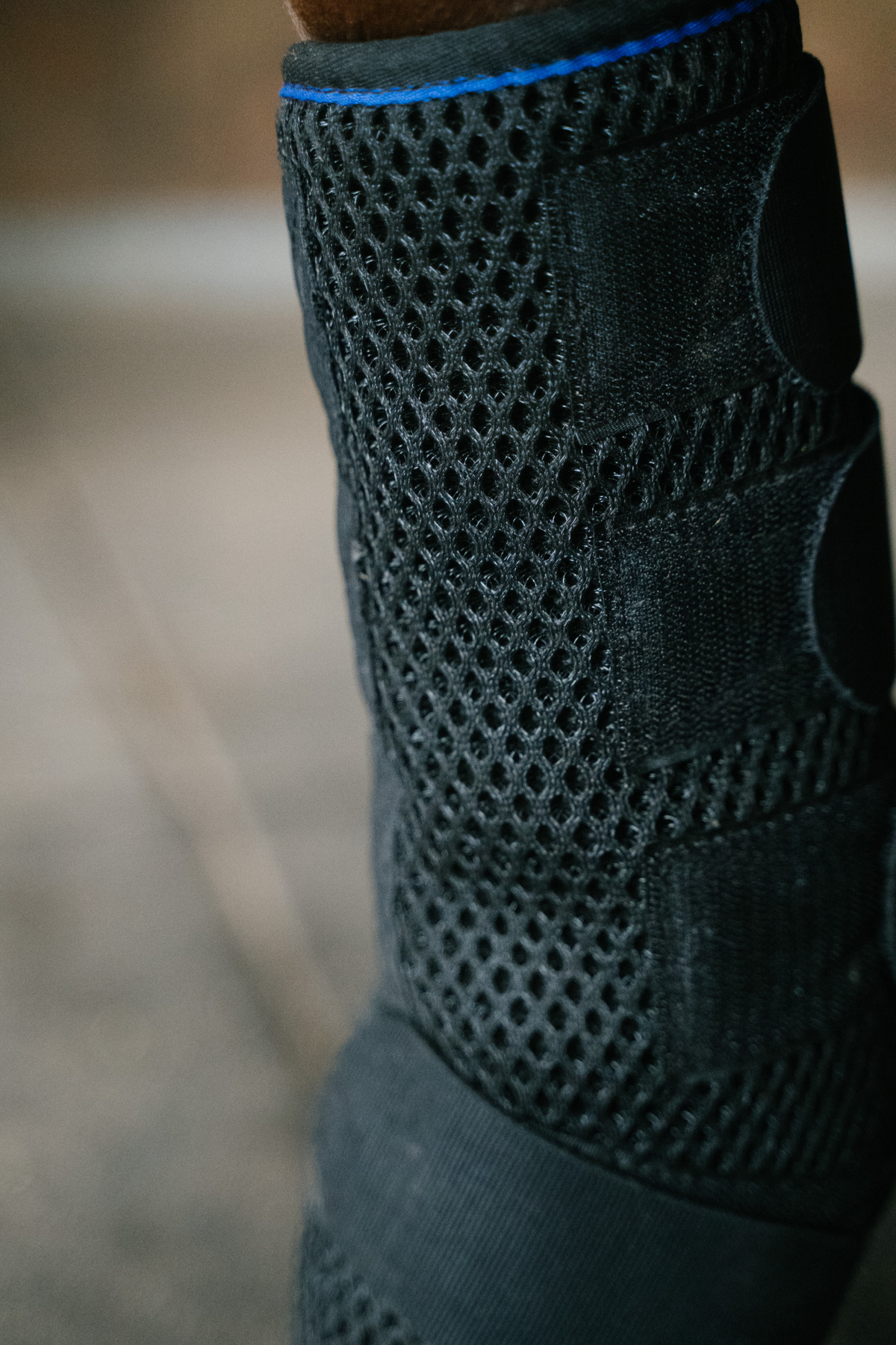 - Matériau souple et flexible : le matériau intérieur reste souple, assurant confort et ajustement facile autour des jambes de votre cheval.