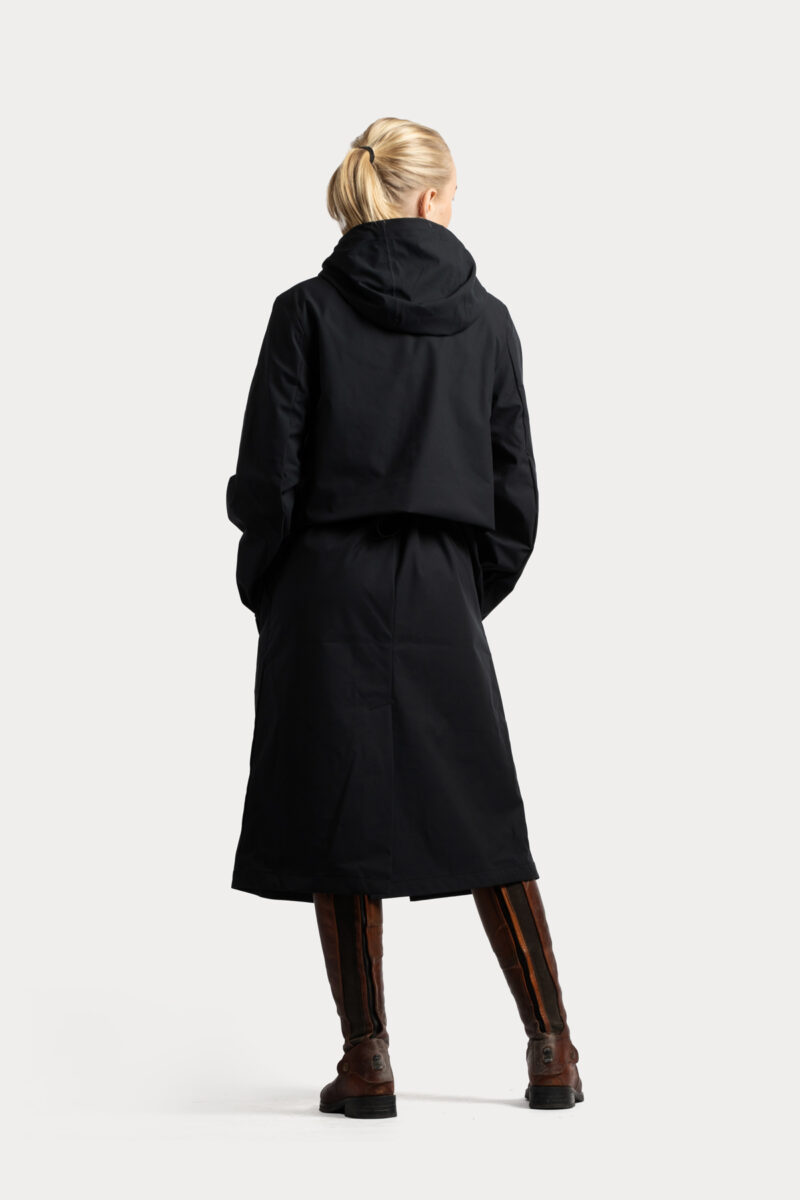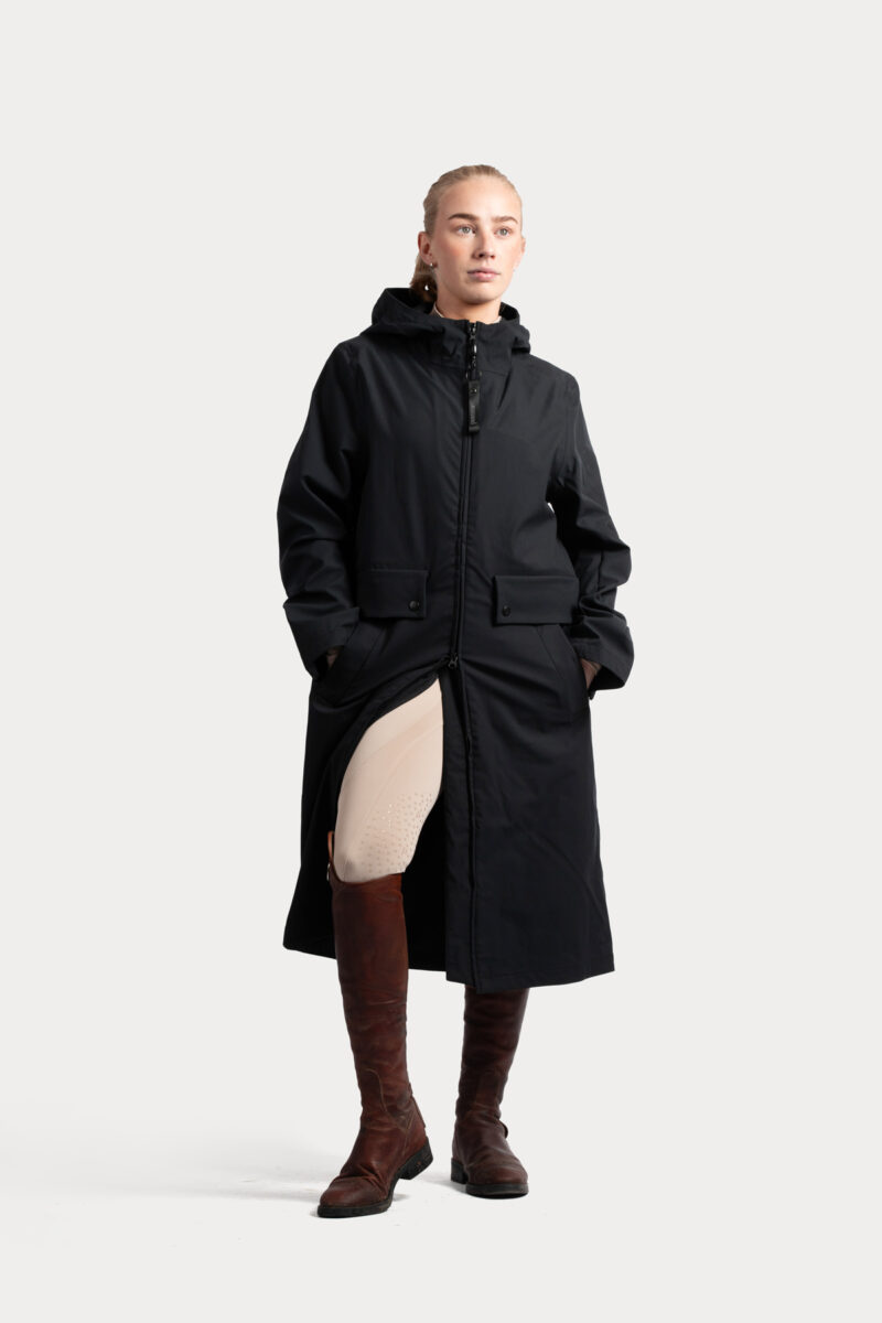 Dotée d'une fermeture éclair sur toute la longueur, cette parka est facile à enfiler et à retirer, tout en vous permettant d'ajuster sa coupe à votre convenance grâce aux cordons de serrage. Ses poches offrent un espace de rangement pour vos essentiels d'équitation, tels que gants, friandises et outils de pansage. Grâce à son ouverture par le haut et le bas à l'avant, ainsi que par le bas à l'arrière, elle se porte facilement à cheval.