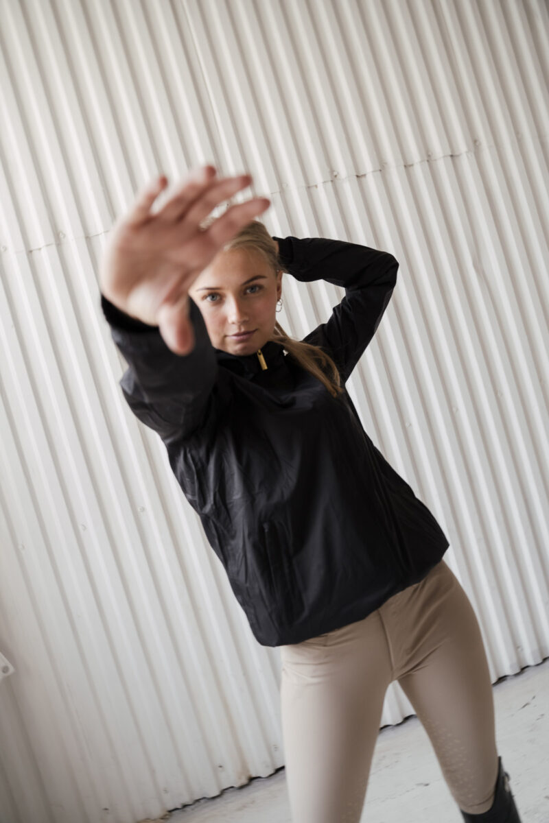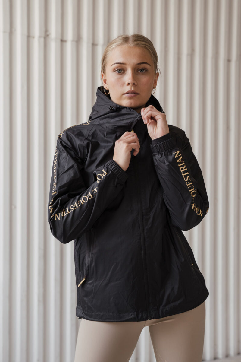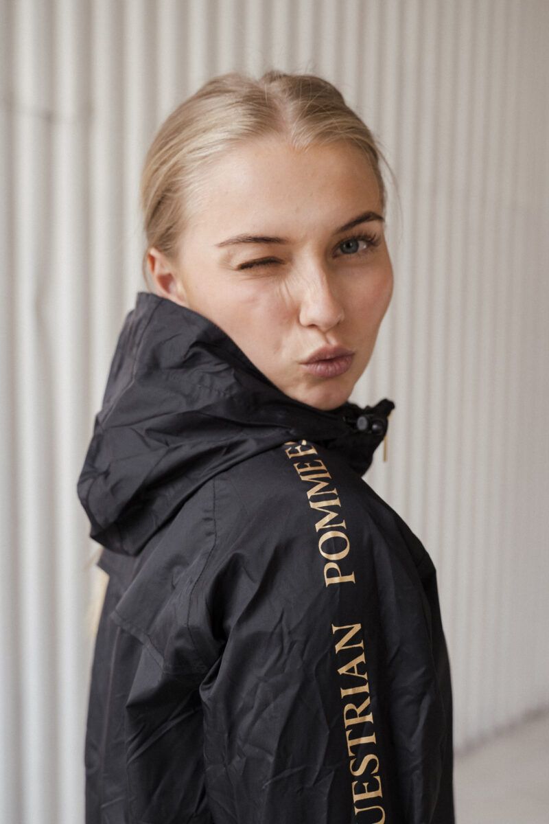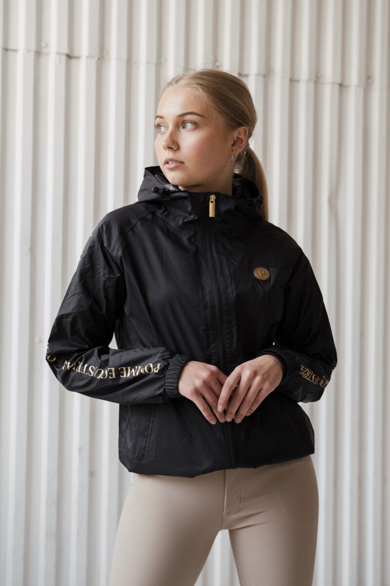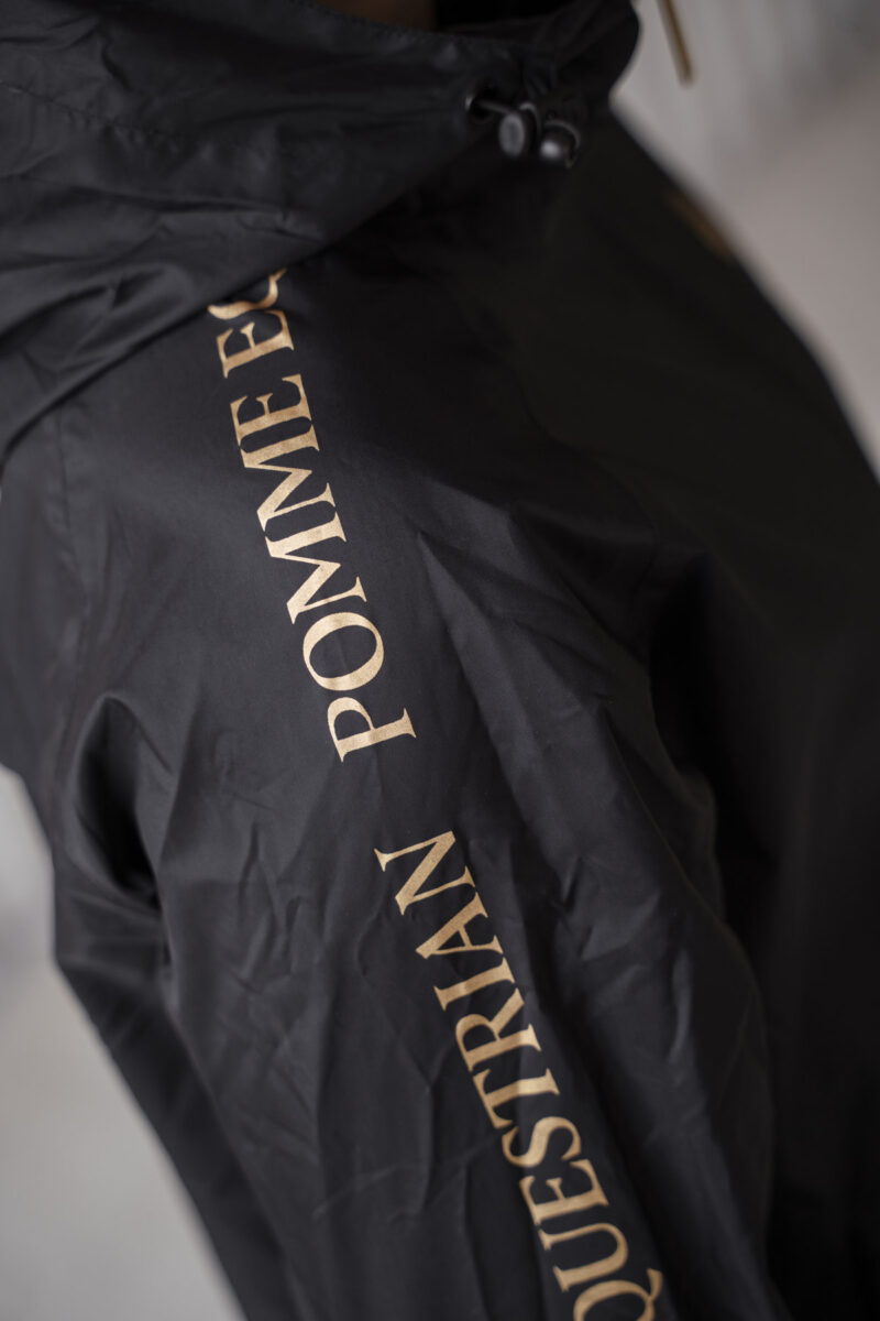 Restez élégant et au sec lors de vos journées à l'écurie avec la veste de pluie Pomme Rainy Black. Légère et confortable, cette veste est dotée d'une fermeture éclair intégrale et est conçue pour résister aux intempéries, ce qui en fait votre vêtement d'extérieur idéal pour l'équitation et les tâches ménagères.