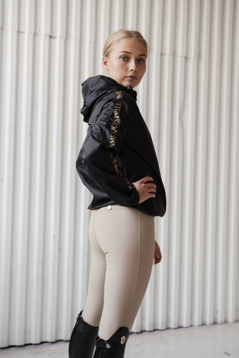 Les détails dorés accrocheurs imprimés sur les manches ajoutent une touche d'élégance, rendant cette veste parfaite pour l'équitation et le quotidien.