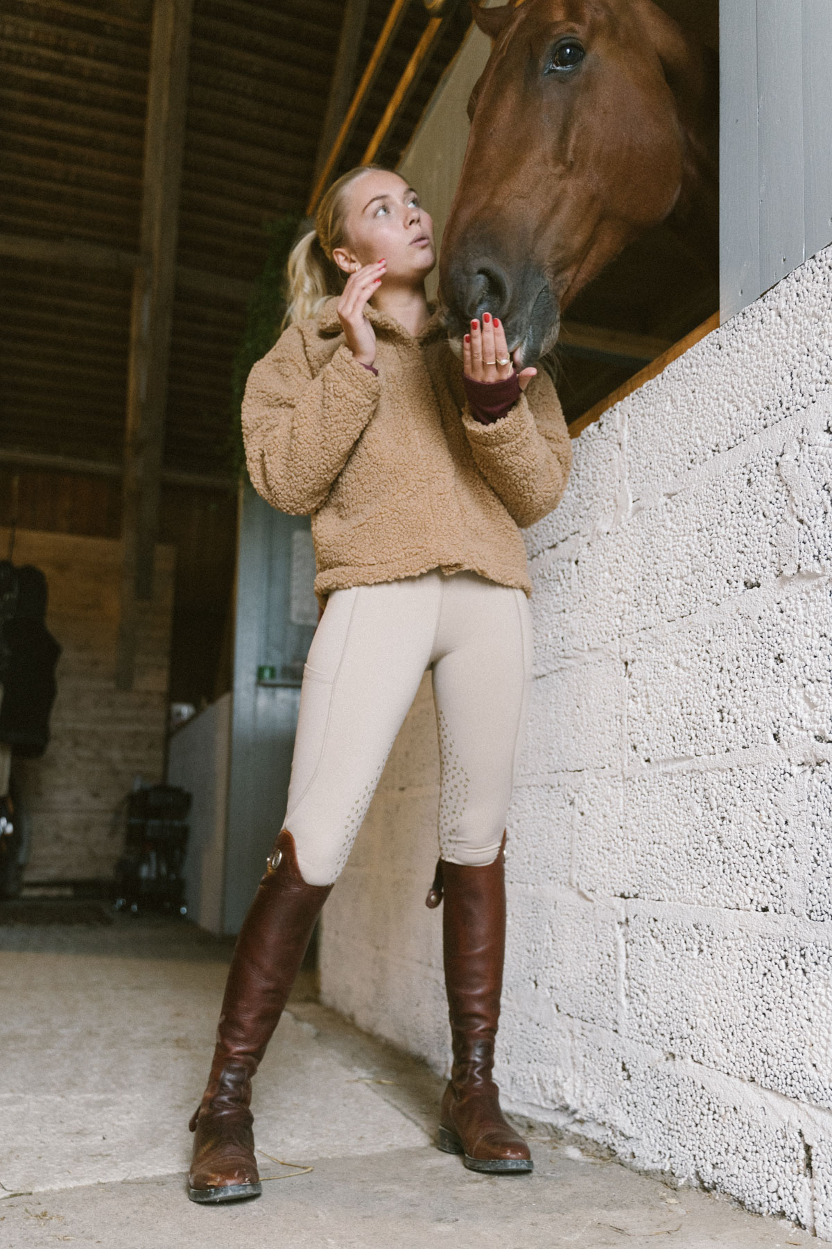 Le compagnon idéal pour l'écurie au printemps. Une veste en peluche douce et ultra-confortable, avec une fermeture boutonnée et deux poches latérales.