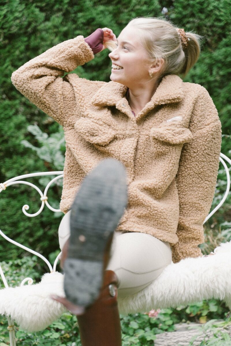 Le compagnon idéal pour l'écurie au printemps. Une veste en peluche douce et ultra-confortable, avec une fermeture boutonnée et deux poches latérales.