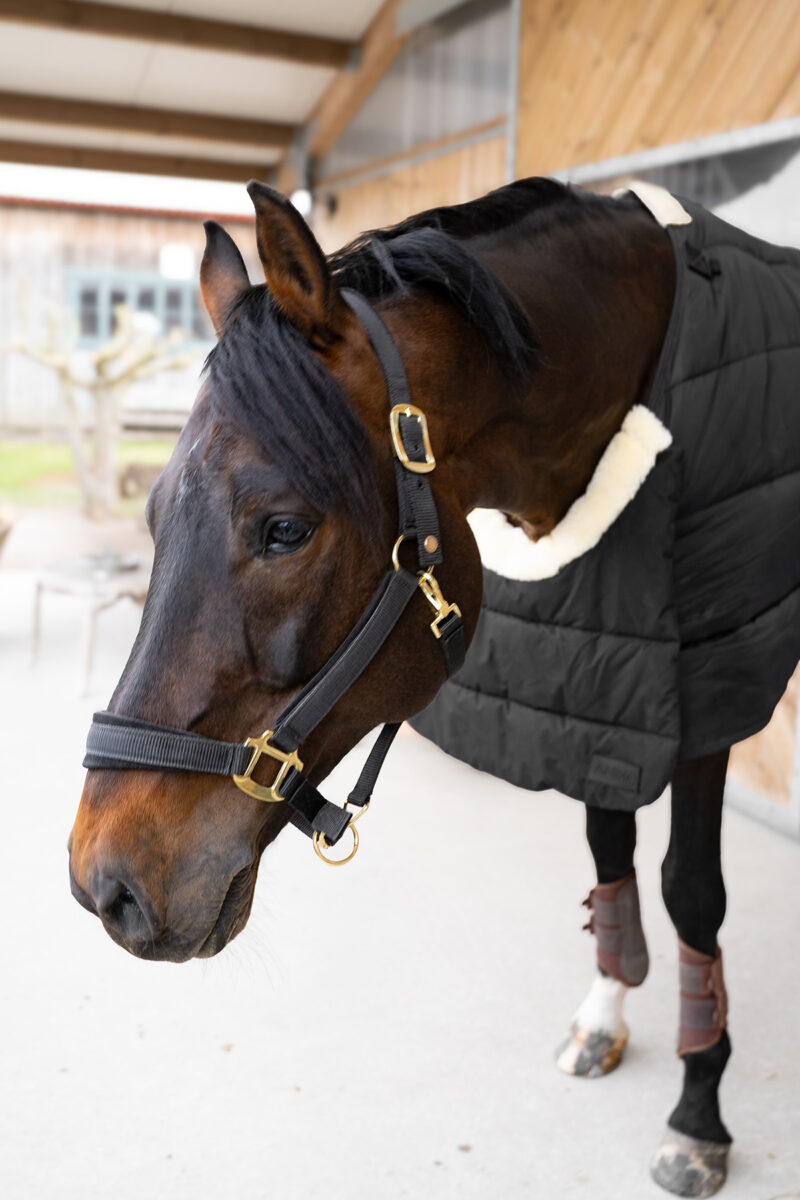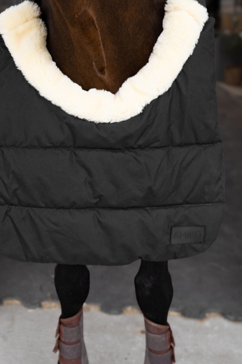Crafted with care, the inner flap is lined with ultra-soft artificial fur, offering a luxurious, comfortable feel against your horse’s skin. To further enhance comfort, artificial sheepskin is added to the fold, preventing rubbing around the neck area. The outer fabric of the BIB is made of durable 100% peached polyester, ensuring long-lasting protection without sacrificing softness. Beyond preventing rubs, the BIB also helps to distribute the pressure exerted by the rug, keeping your horse comfortable and free from irritation.