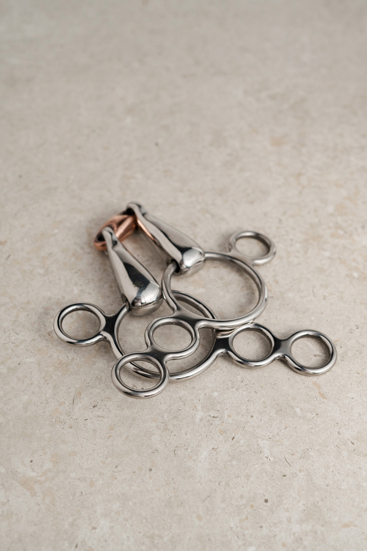 Dit bit heeft drie ringen, waarbij de bovenste ring aan de bakstukken van het hoofdstel wordt bevestigd en de teugels aan een van de drie onderste ringen, wat verschillende hefboomwerkingen biedt. Het is vooral handig voor sterke paarden, omdat de onderste ringen een hefboomeffect creëren wanneer het paard op het bit leunt. Ook wel bekend als een continentaal bit, brengt het het bit in de mond van het paard omhoog op dezelfde manier als een traditionele ophaaltrens, maar dan minder hard. Bij gebruik van de teugels op de onderste ringen is er een aanzienlijke toename van de druk op de nek. Om dit te voorkomen, raden we aan om twee teugels te gebruiken of rondingen aan één teugel te bevestigen. Deze aanpak helpt om goed contact met de trensring te behouden zonder dat er druk op de nek wordt uitgeoefend wanneer dat niet gewenst is.