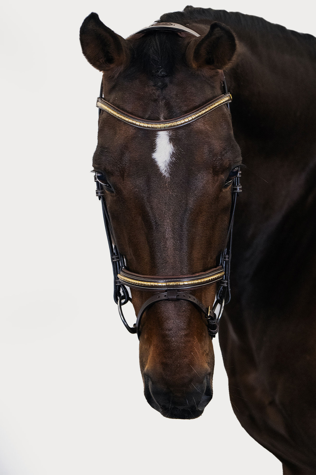 - Bakstukken: Onze bakstukken zijn ontworpen om de druk op de nek te verlichten en zijn voorzien van elastische Cradles™, waardoor het bit comfortabel blijft liggen. Deze extra elastische band zorgt ervoor dat het bit 'veren', waardoor de statische druk op de tanden en kaken van het paard wordt verminderd. De Cradles zijn vastgenaaid, waardoor dit hoofdstel bijzonder geschikt is voor springen en eventing, maar ook veelzijdig genoeg is voor dressuur thuis. Franse haken vergemakkelijken het wisselen van bit indien nodig.