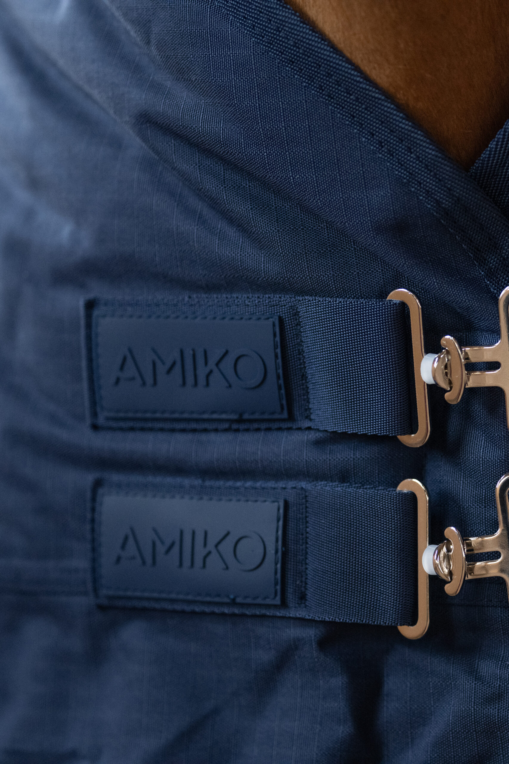 De Amiko deken is ontworpen met het comfort van je paard in gedachten en heeft een anatomische vorm die zich op natuurlijke wijze aanpast aan het lichaam van je paard. Hij blijft op zijn plaats, zelfs na het rollen, dankzij een veilige klittenbandsluiting, compleet met twee sluitingen aan de voorkant en drie kruissingels voor een goede pasvorm. Inclusief bevestigingen om eenvoudig een halsstuk toe te voegen.