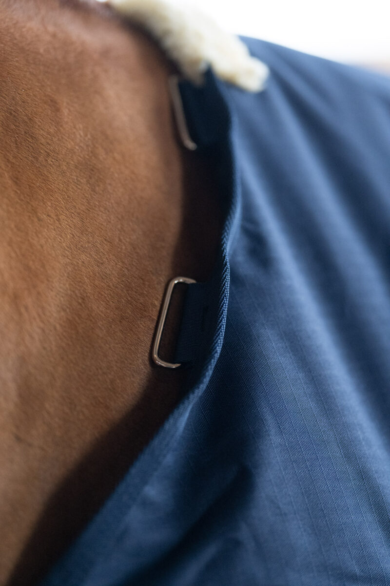 De Amiko deken is ontworpen met het comfort van je paard in gedachten en heeft een anatomische vorm die zich op natuurlijke wijze aanpast aan het lichaam van je paard. Hij blijft op zijn plaats, zelfs na het rollen, dankzij een veilige klittenbandsluiting, compleet met twee sluitingen aan de voorkant en drie kruissingels voor een goede pasvorm. Inclusief bevestigingen om eenvoudig een halsstuk toe te voegen.