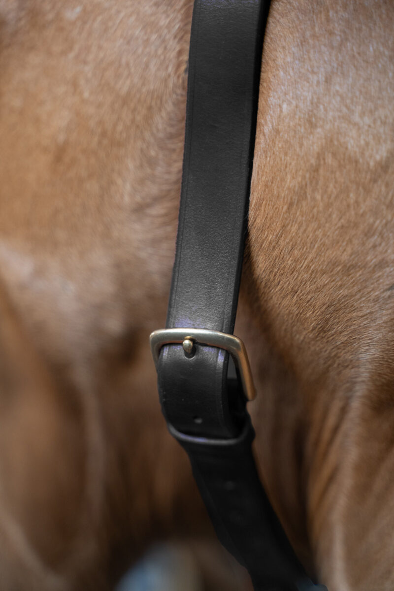 Met duurzame messing gespen en een strak leren ontwerp combineert deze martingaal stevigheid met elegantie, waardoor het een betrouwbare en stijlvolle keuze is voor professionele ruiters. De leren constructie biedt niet alleen duurzaamheid, maar verbetert ook het comfort, waardoor uw paard vrij kan bewegen en tegelijkertijd consistente controle behoudt.