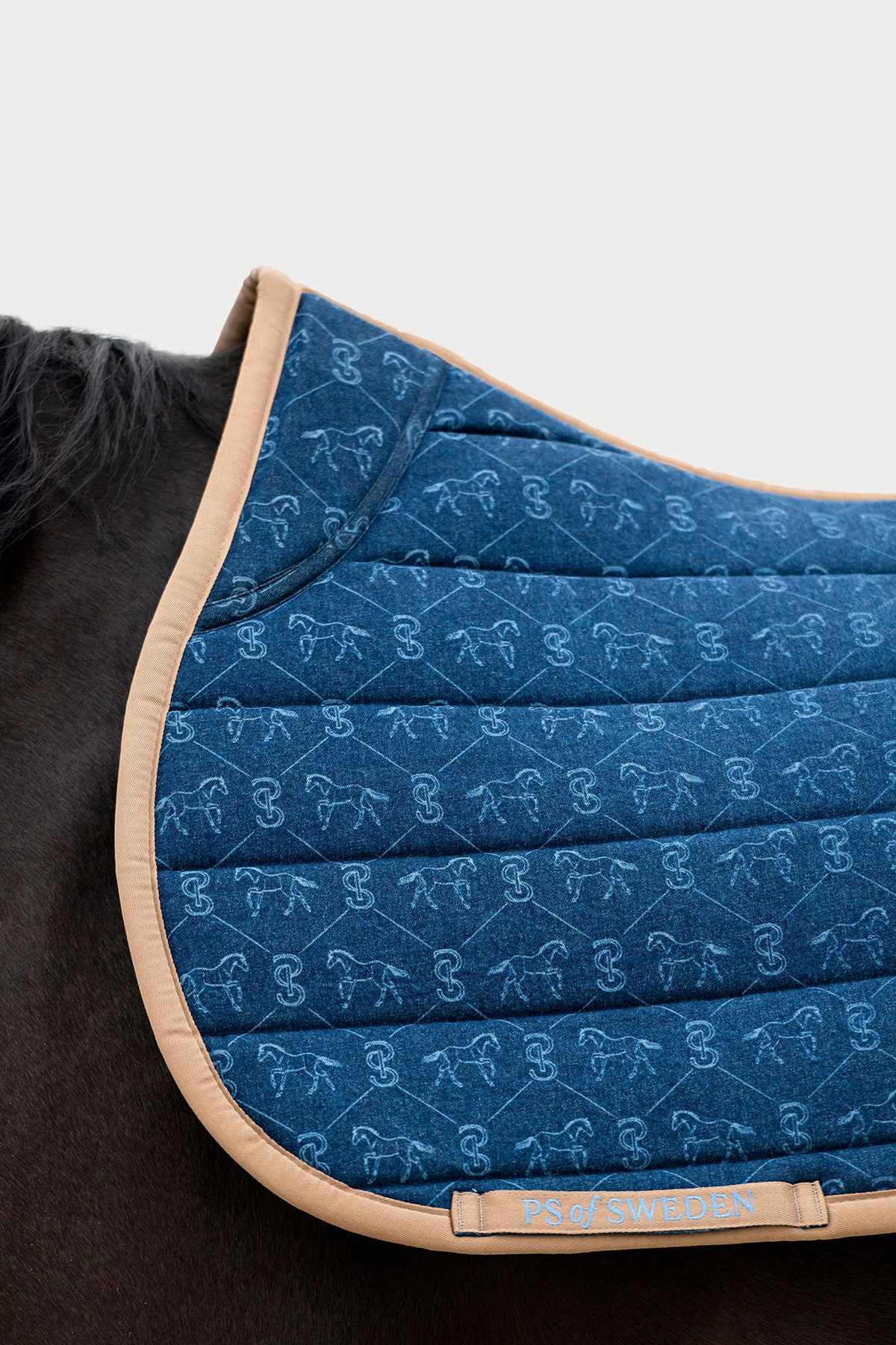 Geef je rijuitrusting een upgrade met het PS of Sweden Running Horse zadeldek in denim. Dit zadeldek in beperkte oplage heeft een levendige print van een rennend paard op een duurzame denim basis, waardoor het een stijlvolle keuze is voor elke ruiter.
