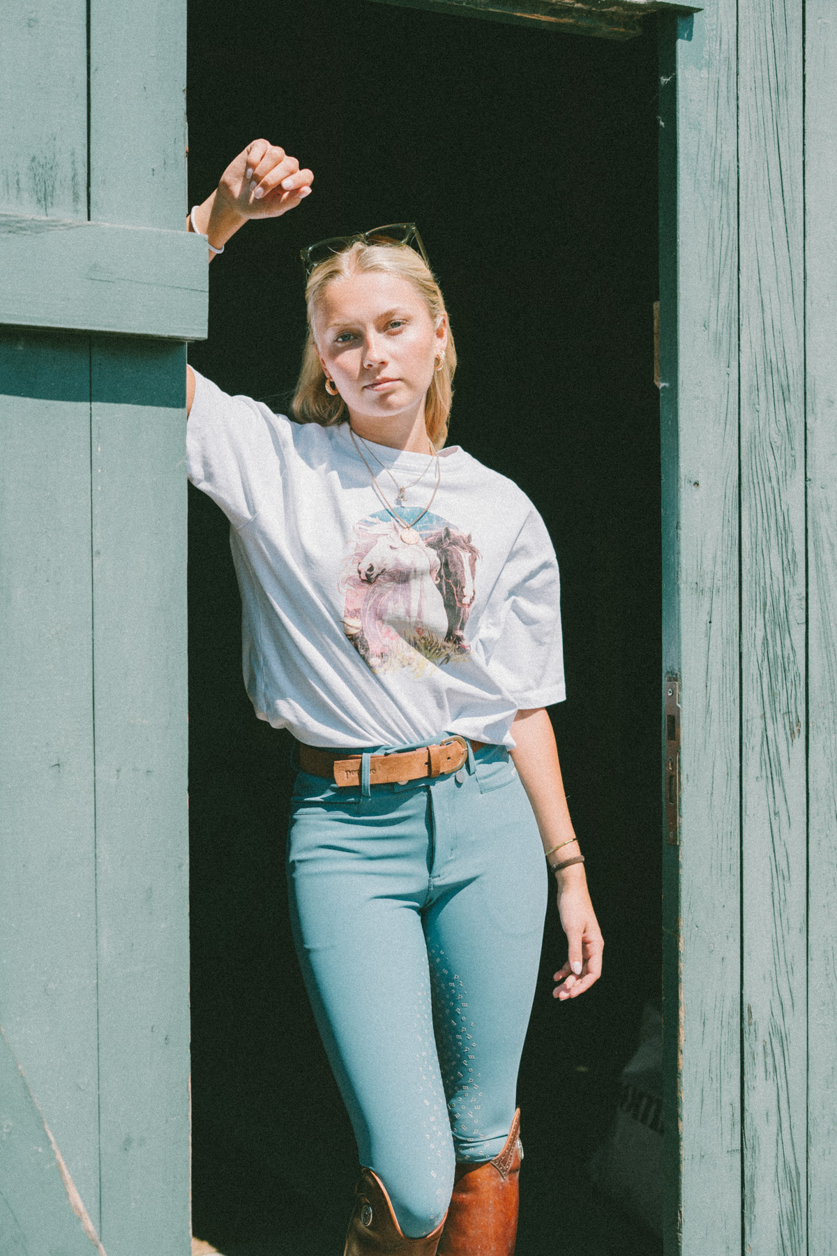 Made from soft, high-quality fabric, the Madison Tee is breathable and offers all-day comfort. Whether you’re at the stables, out with friends, or relaxing at home, this tee brings a unique equestrian style to your wardrobe. Choose the short sleeve version for a cool and casual look, or the long sleeve for a bit of extra warmth. Pair it with your favorite breeches in the stable, or a pair of jeans or a skirt for everyday use.