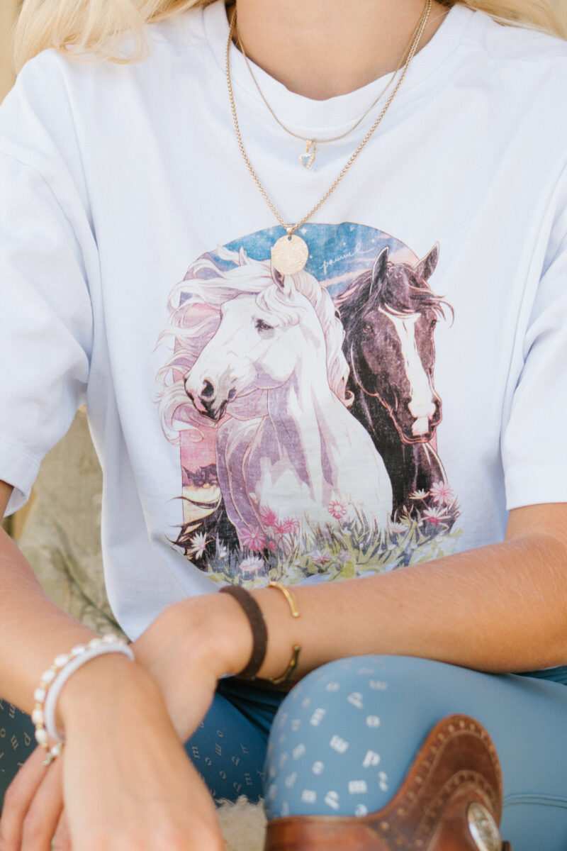 Made from soft, high-quality fabric, the Madison Tee is breathable and offers all-day comfort. Whether you’re at the stables, out with friends, or relaxing at home, this tee brings a unique equestrian style to your wardrobe. Choose the short sleeve version for a cool and casual look, or the long sleeve for a bit of extra warmth. Pair it with your favorite breeches in the stable, or a pair of jeans or a skirt for everyday use.
