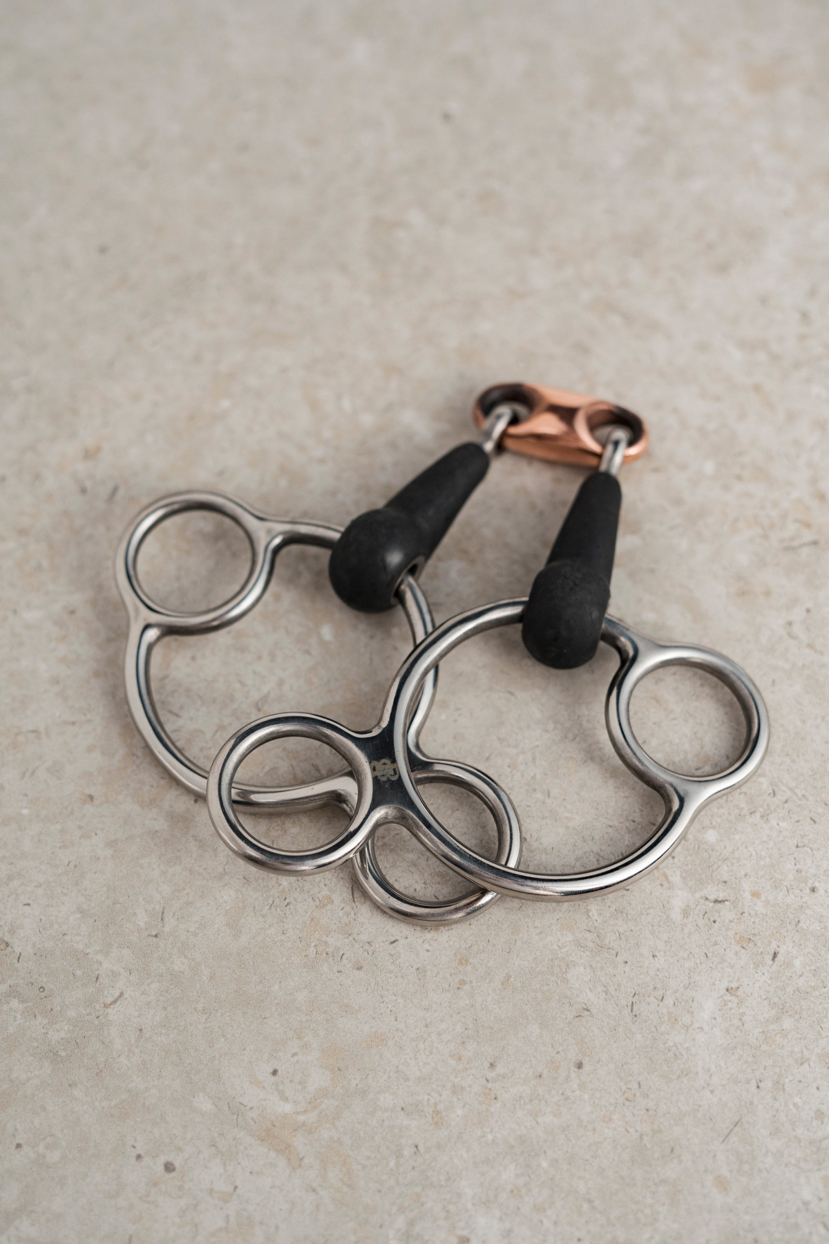 This bit features a gentle rubber coating that is soft and soothing on the mouth, making it particularly suitable for horses with sensitive mouths or those that tend to be fussy with their bits. Additionally, the rubber coating on the bit is not only gentle but also encourages the horse to mouthing on the bit and produce saliva, promoting a softer and more responsive mouth.