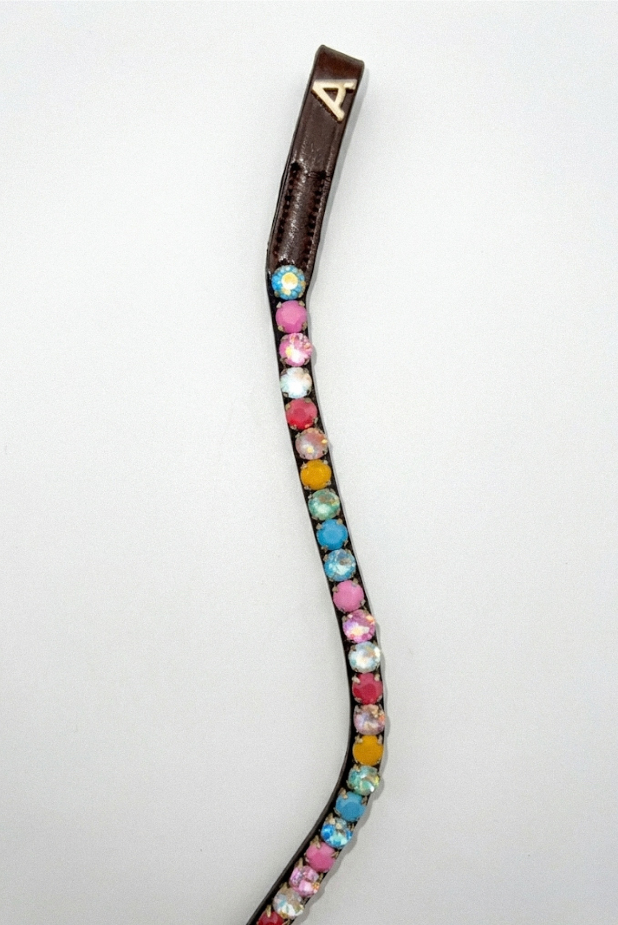Featuring a gracefully curved shape, the browband follows the natural contours of the horse’s forehead for a comfortable fit, while the high-quality crystal stones catch the light beautifully, available in a variety of colors to suit your personal style. The secure stitching and premium materials ensure the browband retains its shape and brilliance ride after ride, making it a reliable addition to your tack collection.