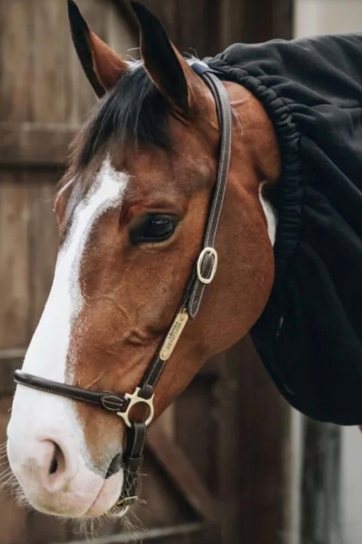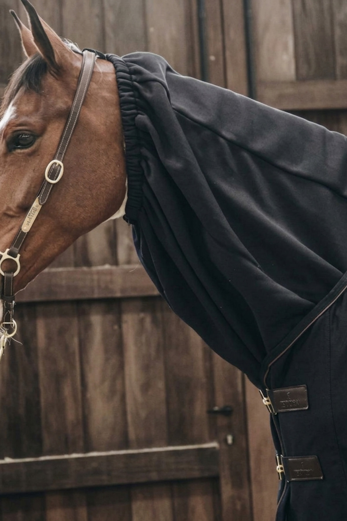 The scarf is thoughtfully designed for easy handling: a zipper under the neck allows quick fastening and removal, while a small Velcro closure at the poll can be attached to your horse’s halter to keep the scarf securely in place. The elastic neckband ensures a snug, comfortable fit without restricting movement, respecting your horse’s comfort at all times.