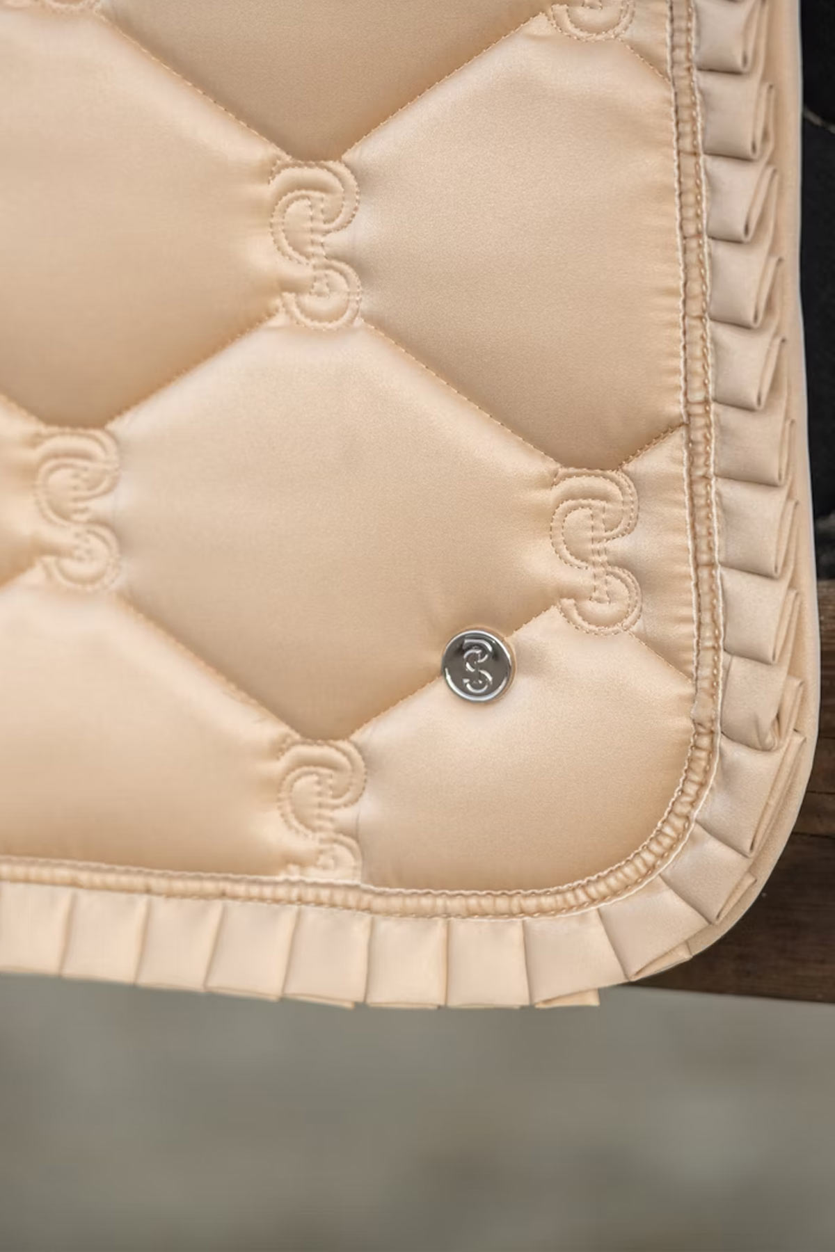 Sophisticated style meets smart design in the PS of Sweden Saddle Pad Jump – Ruffle Lt in Sand. Created for riders who demand both elegance and performance, this anatomically shaped saddle pad offers a thoughtful blend of comfort, stability, and technical functionality.