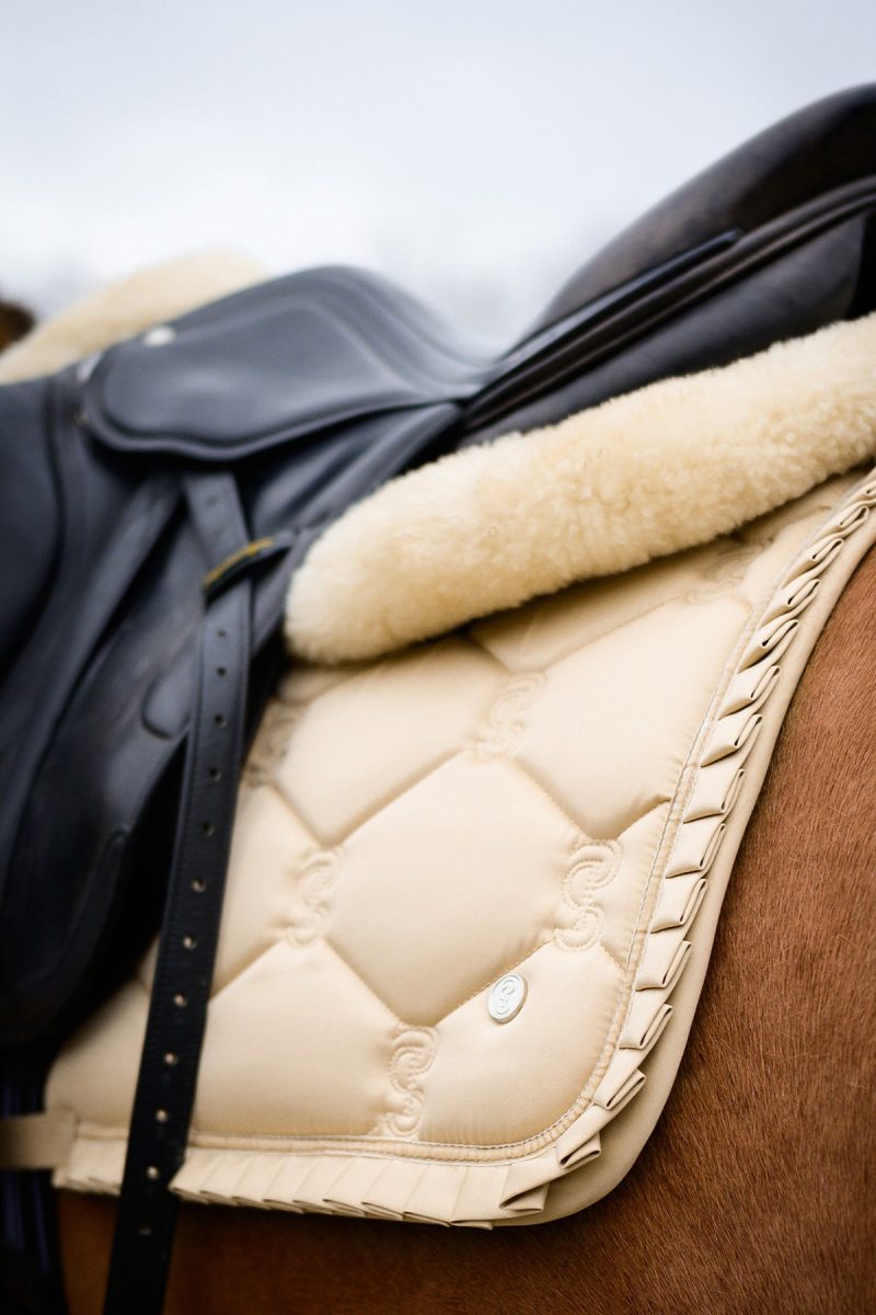 Finished with a delicate ruffled trim, an embroidered PS of Sweden quote along the spine, and a metal PS logo, this pad brings refined detail to any jumper’s tack collection.