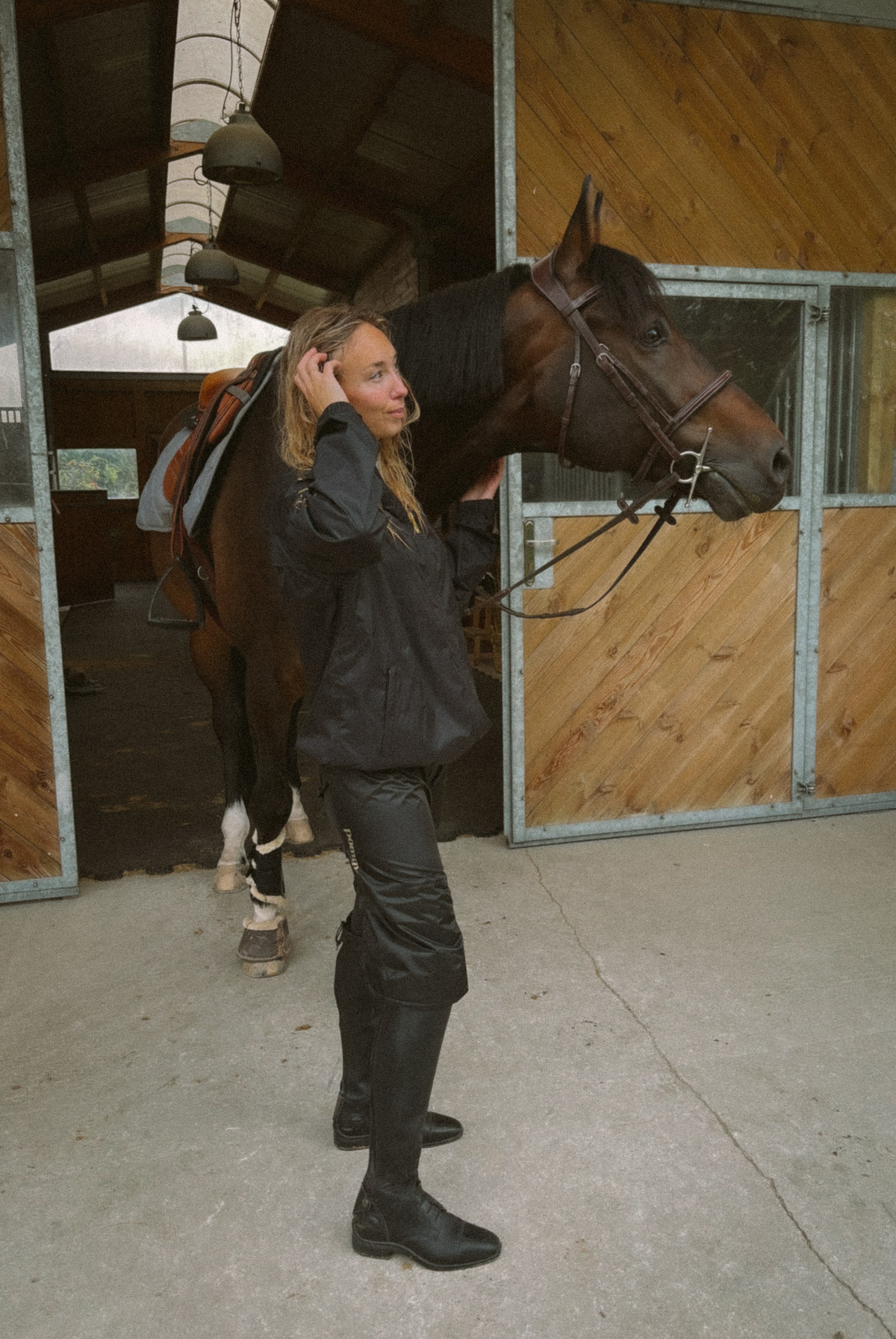 Stay comfortably dry and protected no matter the weather with the Pomme Rain Chaps. Designed for riders who refuse to let rain or mud slow them down, these sleek black chaps provide reliable, waterproof coverage for your legs, keeping your breeches spotless during early morning stables visits, wet rides, or brisk outdoor adventures.