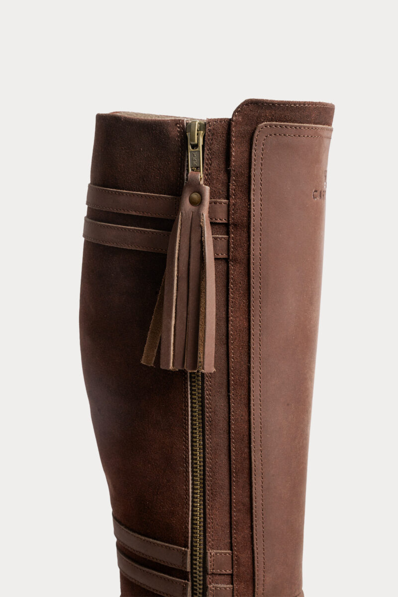 Crafted from premium leather and mocca, they showcase exceptional durability and a sophisticated, timeless look. The boots are lined for added warmth, making them ideal for colder days, while the intricate tassel detail on the zipper adds a touch of charm to your equestrian wardrobe. Their sleek design and thoughtful construction ensure you’ll look just as polished at the stables as you do in everyday life.