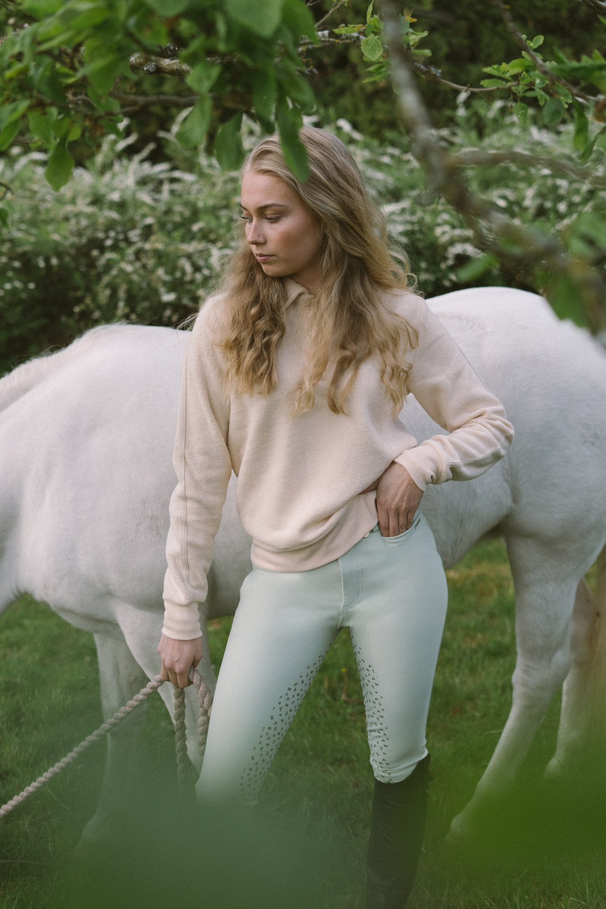 The measurements are given in CM. The blond model in the images is 166 cm and uses x-small. Her measurements are: Waist circumference - 65 cm, hip circumference - 94 cm, inseam length - 70 cm.
