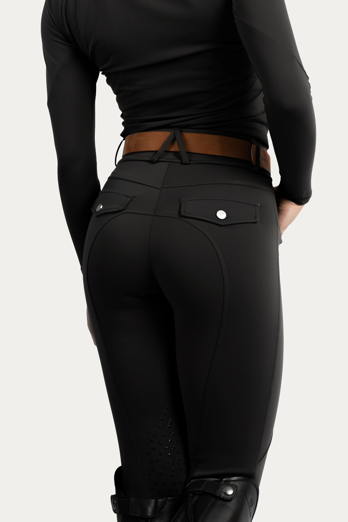 The Pomme Fay Breeches feature two front pockets perfect for your mobile phone or small essentials, along with faux flap pockets at the back for added style. With no front zipper or buttons, they offer a seamless look, giving you the best of both tights and traditional breeches.