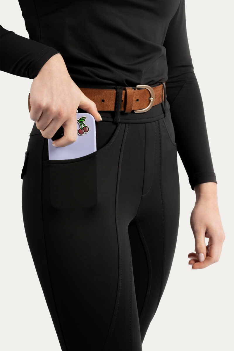 The Pomme Fay Breeches feature two front pockets perfect for your mobile phone or small essentials, along with faux flap pockets at the back for added style. With no front zipper or buttons, they offer a seamless look, giving you the best of both tights and traditional breeches.