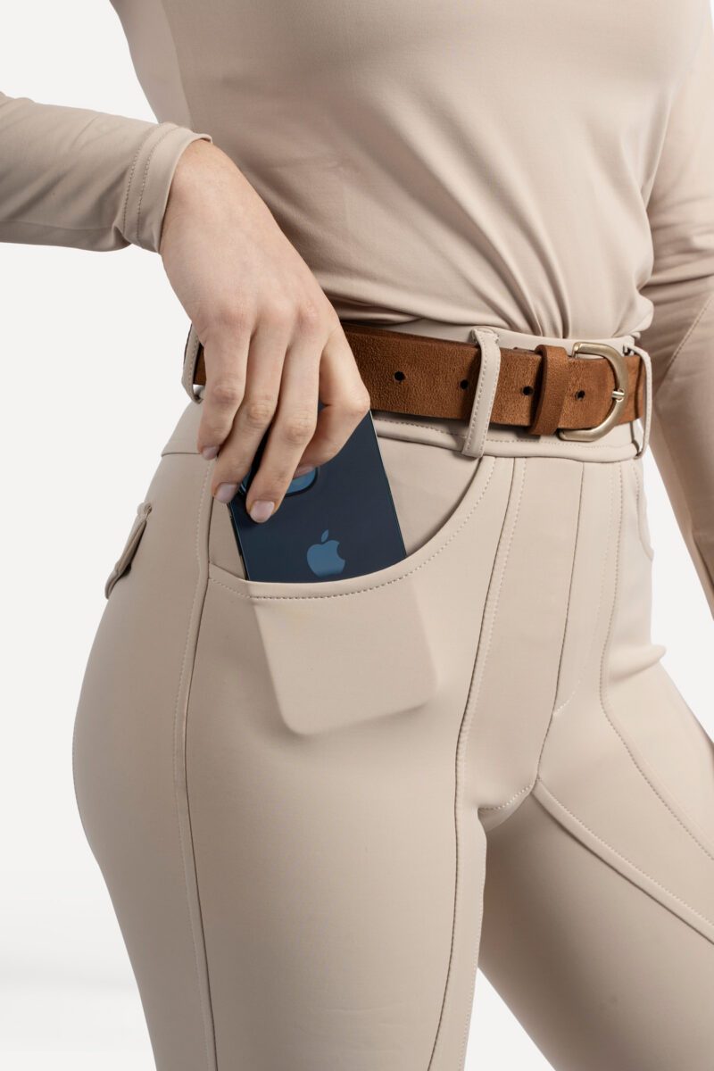 The Pomme Fay Breeches feature two front pockets perfect for your mobile phone or small essentials, along with faux flap pockets at the back for added style. With no front zipper or buttons, they offer a seamless look, giving you the best of both tights and traditional breeches.