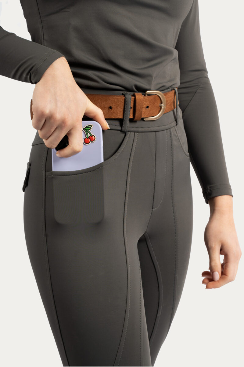 The Pomme Fay Breeches feature two front pockets perfect for your mobile phone or small essentials, along with faux flap pockets at the back for added style. With no front zipper or buttons, they offer a seamless look, giving you the best of both tights and traditional breeches.