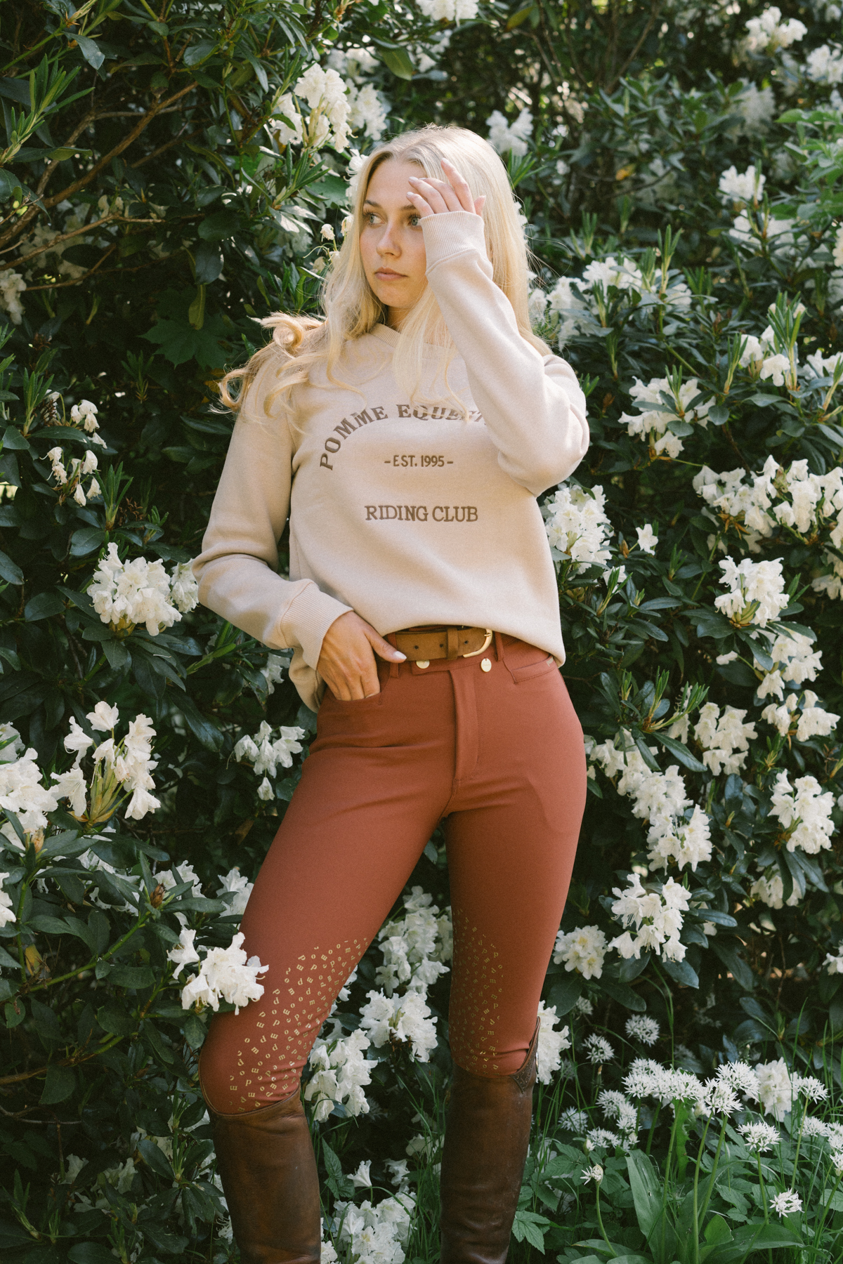 These are an excellent true rest, closer to a Tailored Sportsman rust (versus the orange-tone that Dover has). The fit is true to size, I am genuinely a true Medium, size 28 in TS and Dover breeches and 5’5″ 130lbs.