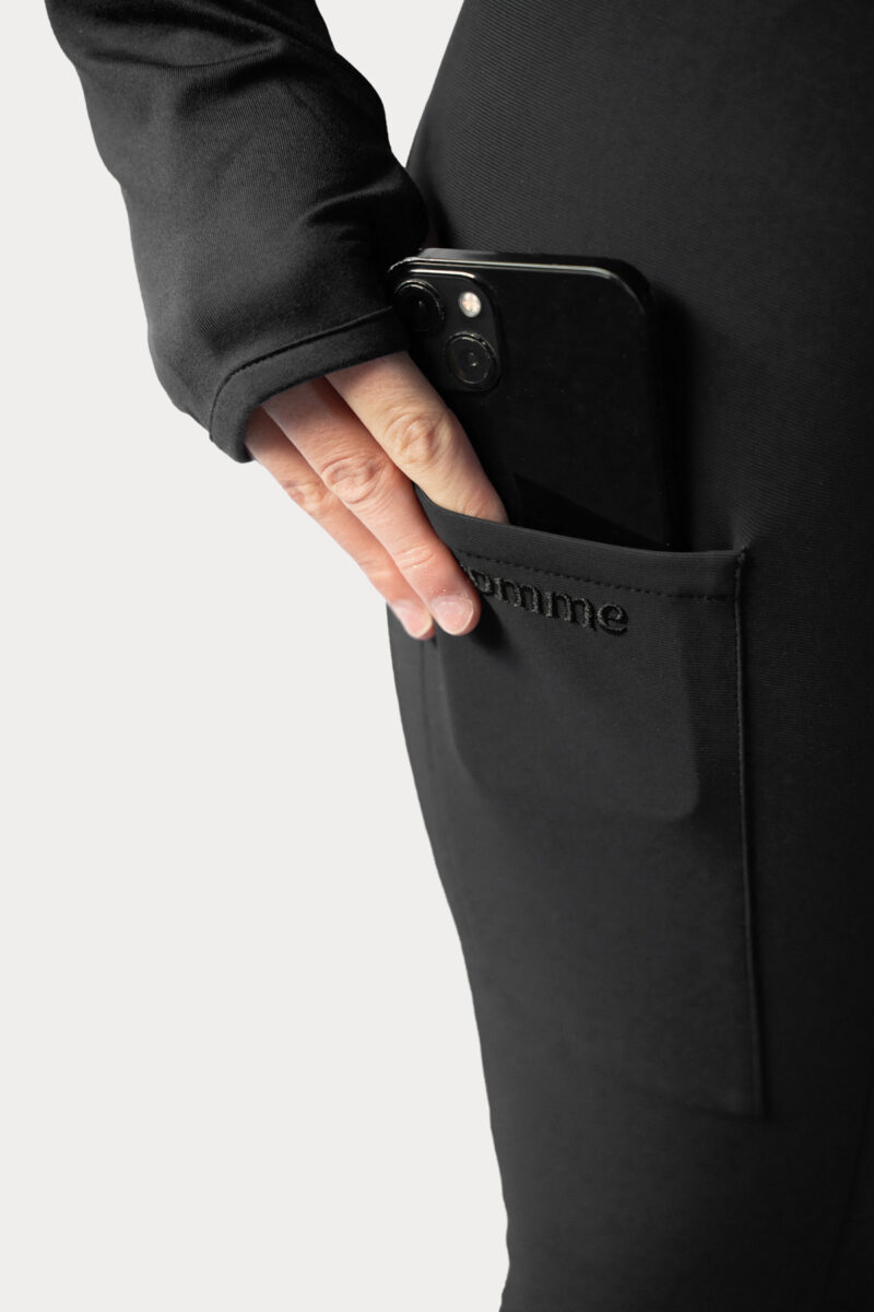 Made from a cutting-edge stretchy fabric with 4-way stretch technology, these breeches ensure unrestricted movement for optimal performance. The high waist design provides both support and a flattering fit, while the mobile pocket on the side lets you store your phone or snacks for your equine companion. The subtle logo details on the ankle, along with golden button details, add a touch of elegance to your riding ensemble.