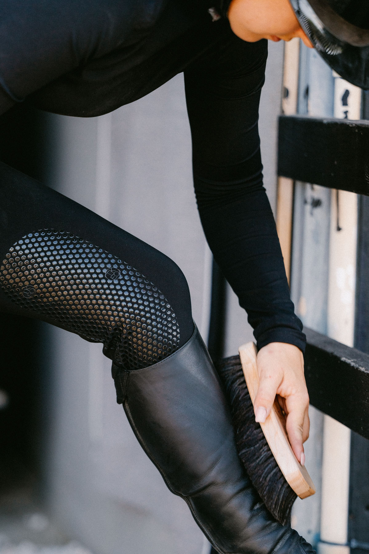 Crafted with ultra-comfortable, second-skin fabric, these breeches offer a flattering high-waisted fit with the flexibility of athletic wear. Silicone grip knee patches ensure stability in the saddle, while the 2.5-inch belt loop accommodates your favorite belt for a personalized touch.