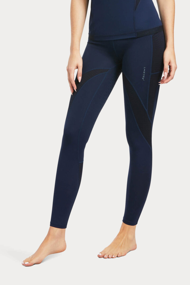 The Ariat Ascent Half Grip Tight in Navy is crafted for the dedicated equestrian athlete, combining cutting-edge technology with exceptional comfort. These tights are designed to support your performance in the saddle, offering a blend of innovative features that cater to both your athletic needs and your riding demands.