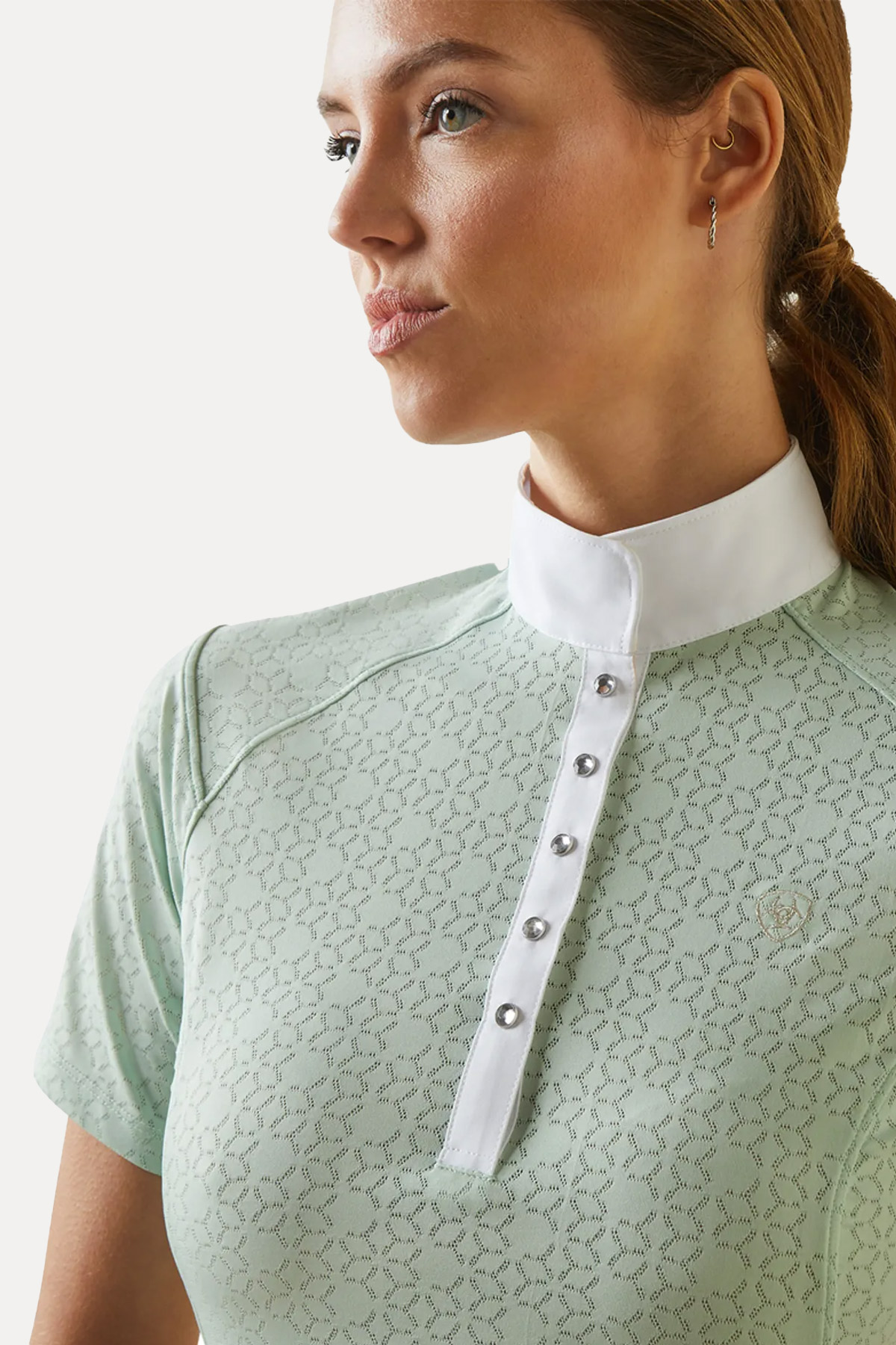 Step confidently into the show ring with the Ariat Aptos Show Shirt, designed to keep you looking sharp while performing at your best. This lightweight show shirt blends elegant details with technical innovation, making it a summer competition essential.