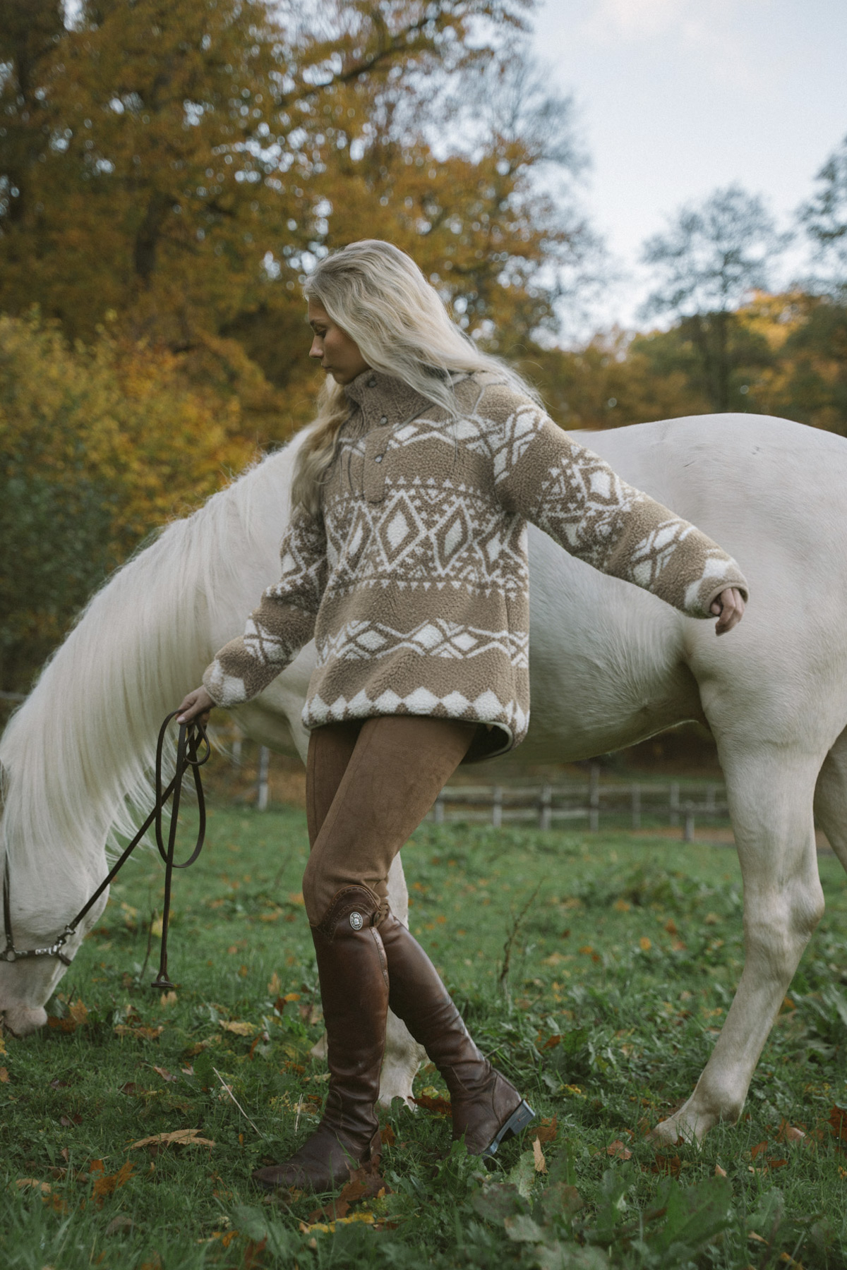 The sweater runs slightly large in size so if you find yourself between two sizes, we recommend choosing the smaller one. Please also keep in mind that the sweater is designed to have an oversized fit. If you prefer a less oversized look, we suggest sizing down.