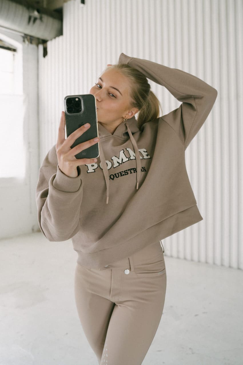The blond model in the images is 166 cm and uses x-small.