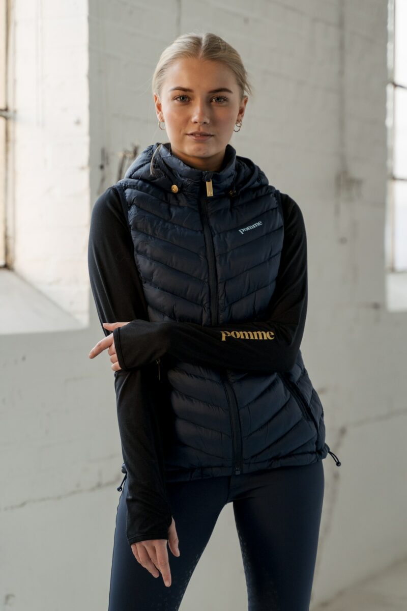 Warm, comfy and lightweight classic. Pomme Ingrid Light Vest mixes function with design and gives you a new favorite essential for your riding wardrobe. Developed for the modern rider who wants to be able to move easily between the stable, competitions and home.Â
