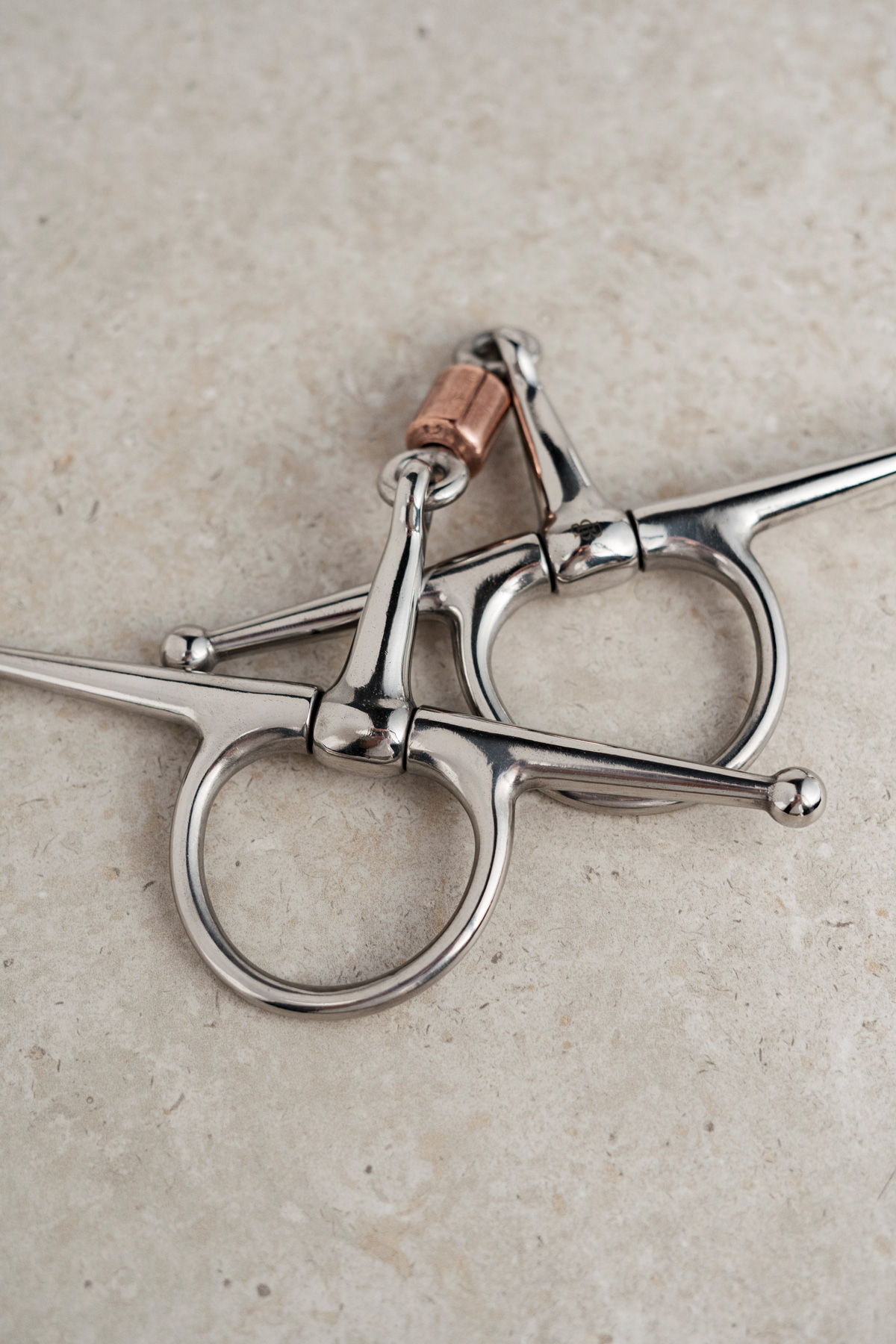 The three-part design ensures a gentle and steady connection with your horse’s mouth. It features a central copper roller, strategically placed to reduce the nutcracker effect often associated with single-jointed bits whilst also distributing pressure evenly over the tongue and bars of the mouth. This roller not only encourages a soft and gentle contact but also emits a sweet and pleasant taste that promotes salivation and mouthing. Copper is a warm and soft metal, making the copper roller very soft and comfortable on the horse’s tongue. Combined with the pleasant taste, the copper roller leads to higher acceptance of the bit by your horse.