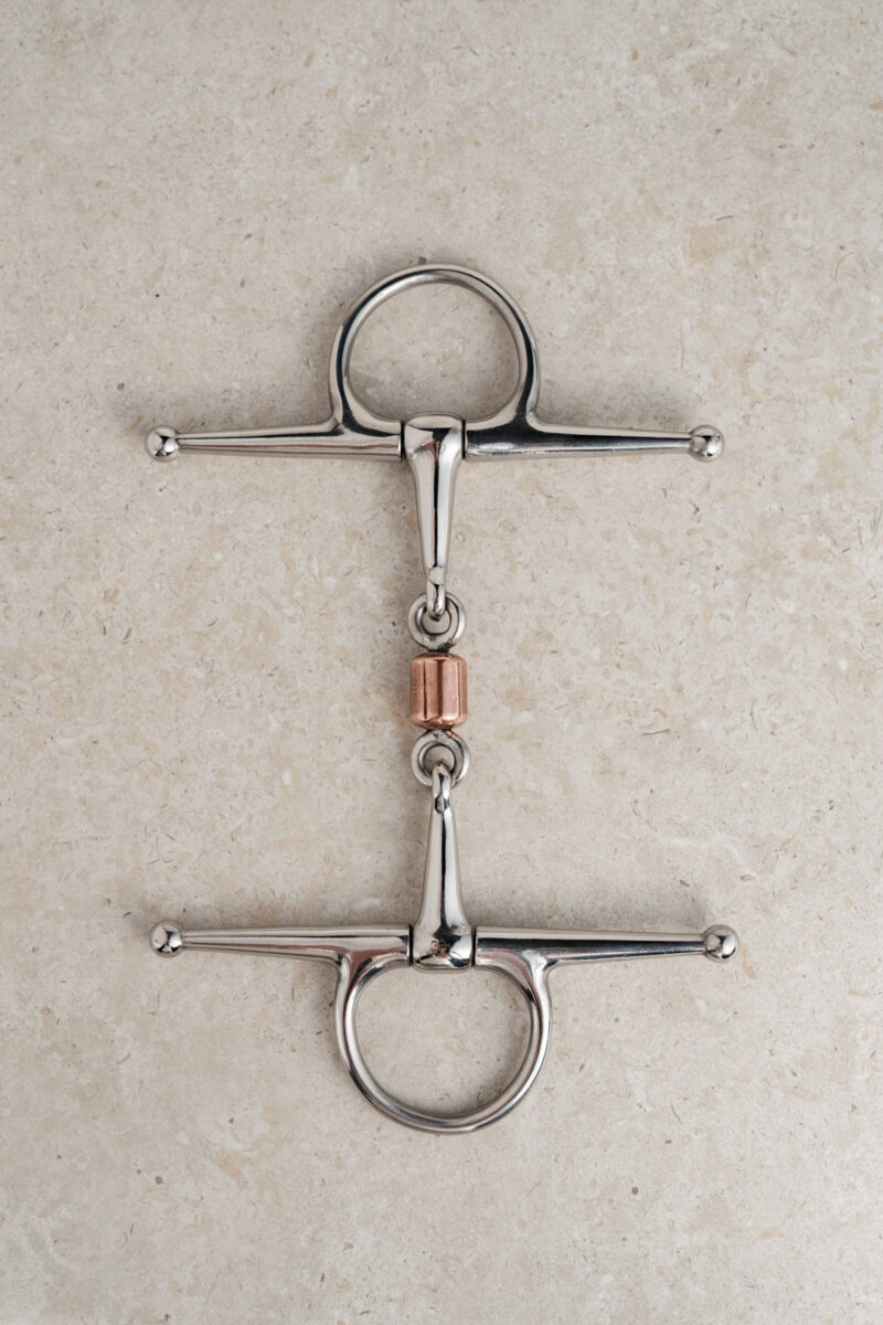 The three-part design ensures a gentle and steady connection with your horse’s mouth. It features a central copper roller, strategically placed to reduce the nutcracker effect often associated with single-jointed bits whilst also distributing pressure evenly over the tongue and bars of the mouth. This roller not only encourages a soft and gentle contact but also emits a sweet and pleasant taste that promotes salivation and mouthing. Copper is a warm and soft metal, making the copper roller very soft and comfortable on the horse’s tongue. Combined with the pleasant taste, the copper roller leads to higher acceptance of the bit by your horse.