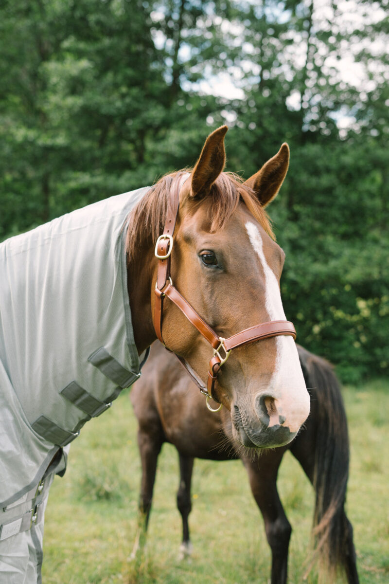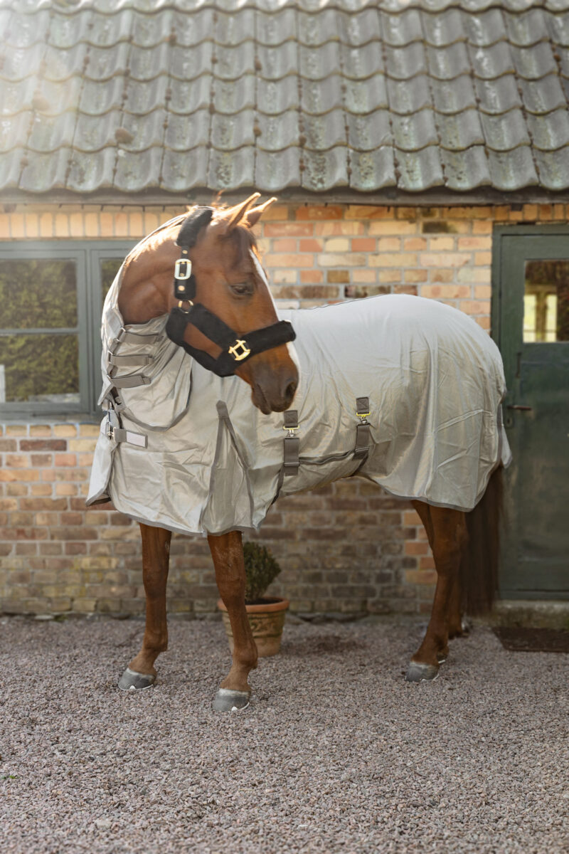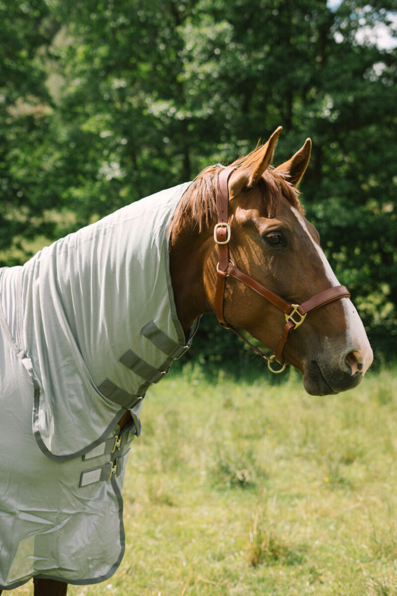 Upplev enastående skydd mot flugor i kombination med exceptionell komfort. Vårt innovativa stängningssystem eliminerar trycket på bröst och manke, vilket säkerställer att din häst kan beta och röra sig fritt utan obehag. Det integrerade, fasta halsbandet erbjuder fullständig täckning från huvud till svans, vilket ger din häst ett pålitligt skydd under hela säsongen.
