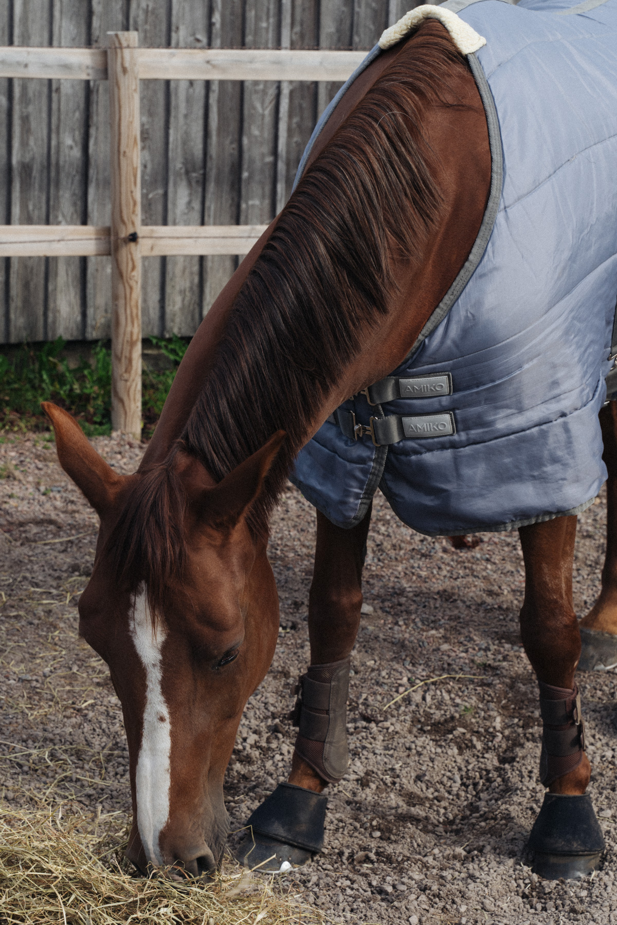 Amiko Essential Rug Indoor – this Indoor Stable Rug is a sophisticated choice for horses who spend their nights indoors. Its elegant and minimalist design is ideal for most horses, offering both style and functionality. Made of robust, tear-resistant 600D polyester material for lasting durability and longevity. The non-rub shoulder area enhances comfort, reducing chafing and eliminating the need for additional shoulder protection. With double buckles at the front and double cross surcingles, the rug offers a secure and comfortable fit. The artificial sheepskin at the withers adds a touch of luxury while preventing chafing.
