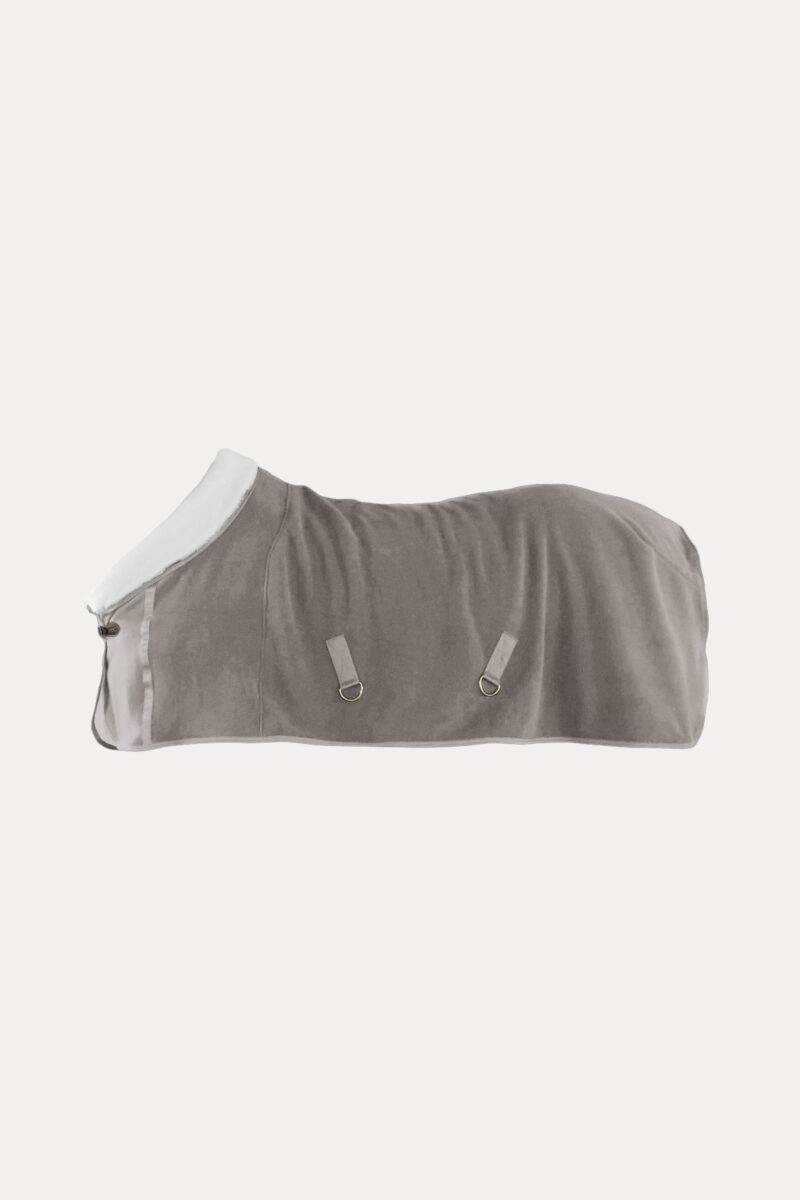 Amiko Essential tävlingstäcke med päls – ett lyxigt och funktionellt täcke perfekt för att hålla din häst varm och bekväm efter träning eller bad på kallare dagar. Detta snygga tävlingstäcke i fleece absorberar effektivt svett eller vatten, vilket säkerställer att din häst håller sig varm och mysig. Det konstgjorda fårskinnet som täcker hela halsen och bröstet ger optimal komfort och ett elegant utseende, vilket gör att din häst sticker ut i stallet eller på tävlingar. Komplett med läderspännen och avtagbara magremmar. Unna din häst ultimat komfort och stil med Amiko Essential tävlingstäcke med päls, perfekt för tävlingsdagar, resor eller användning i stallet.